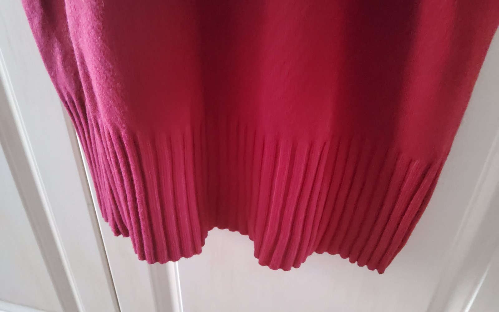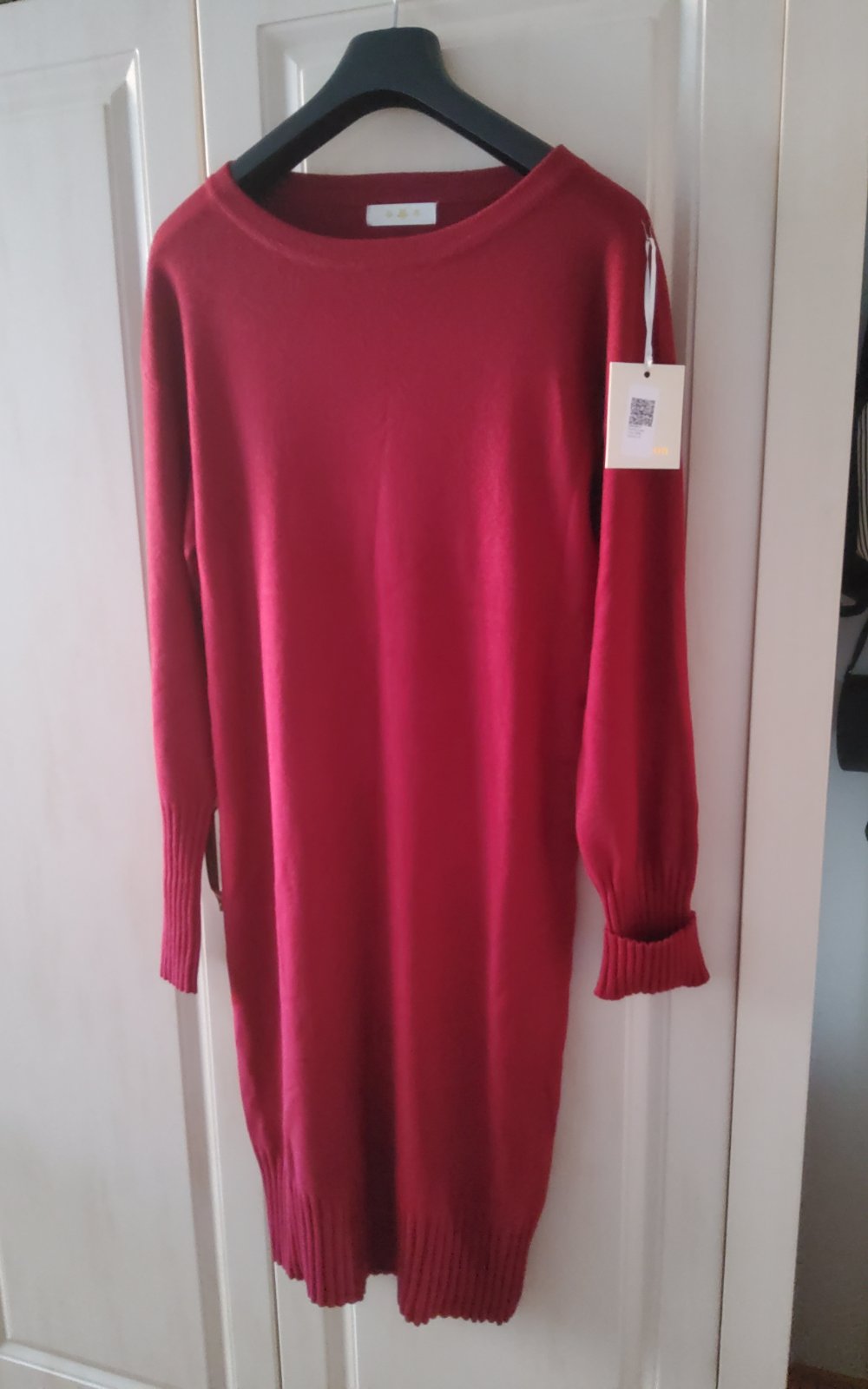 Nové,príjemný material.elastické .dlhé vpredu od krku dolu 97 cm,sírka cez pás 48 x2 v kĺude merané.Farba burgunska červená,trochu tmavšia ako ba foto.