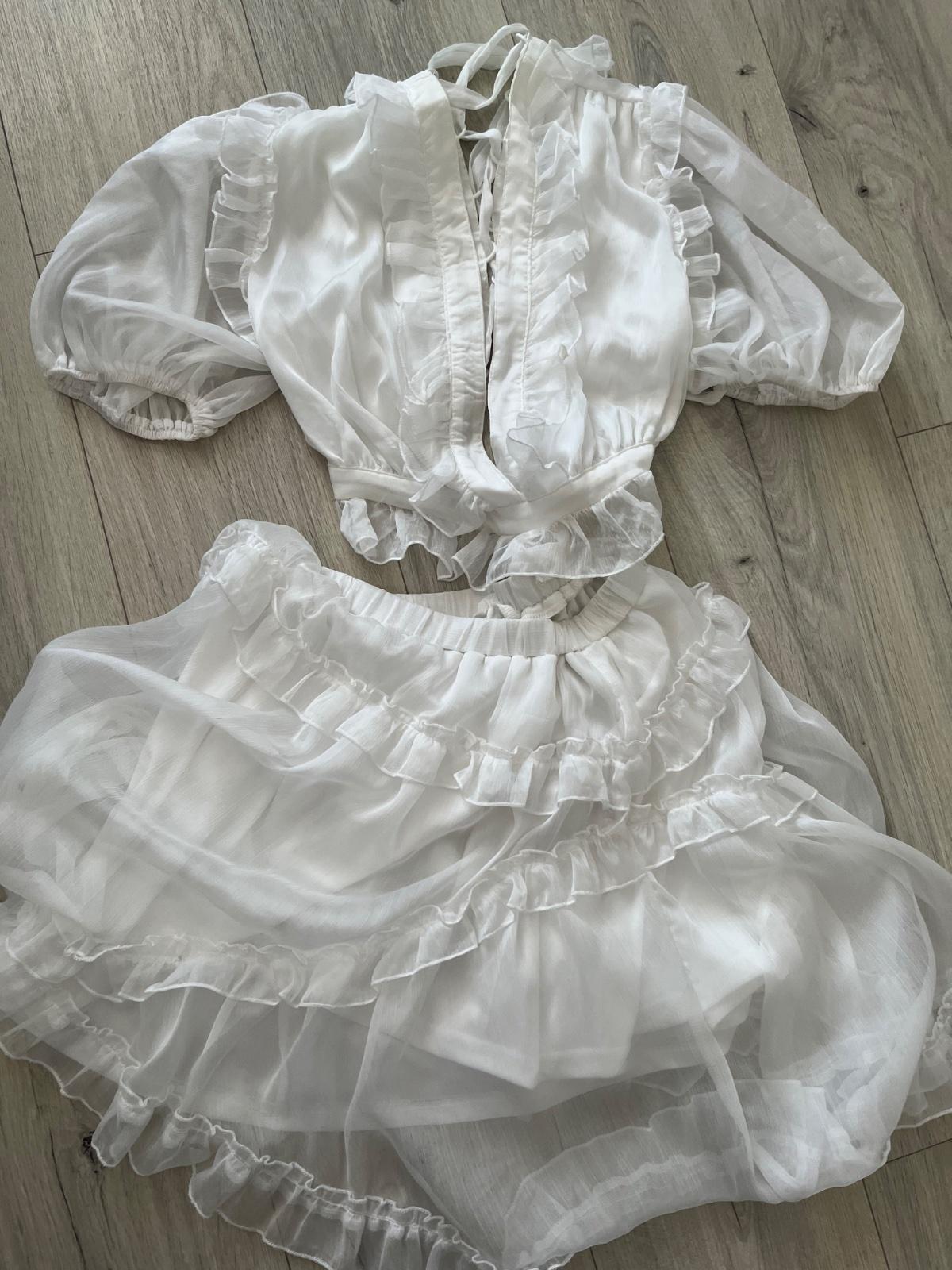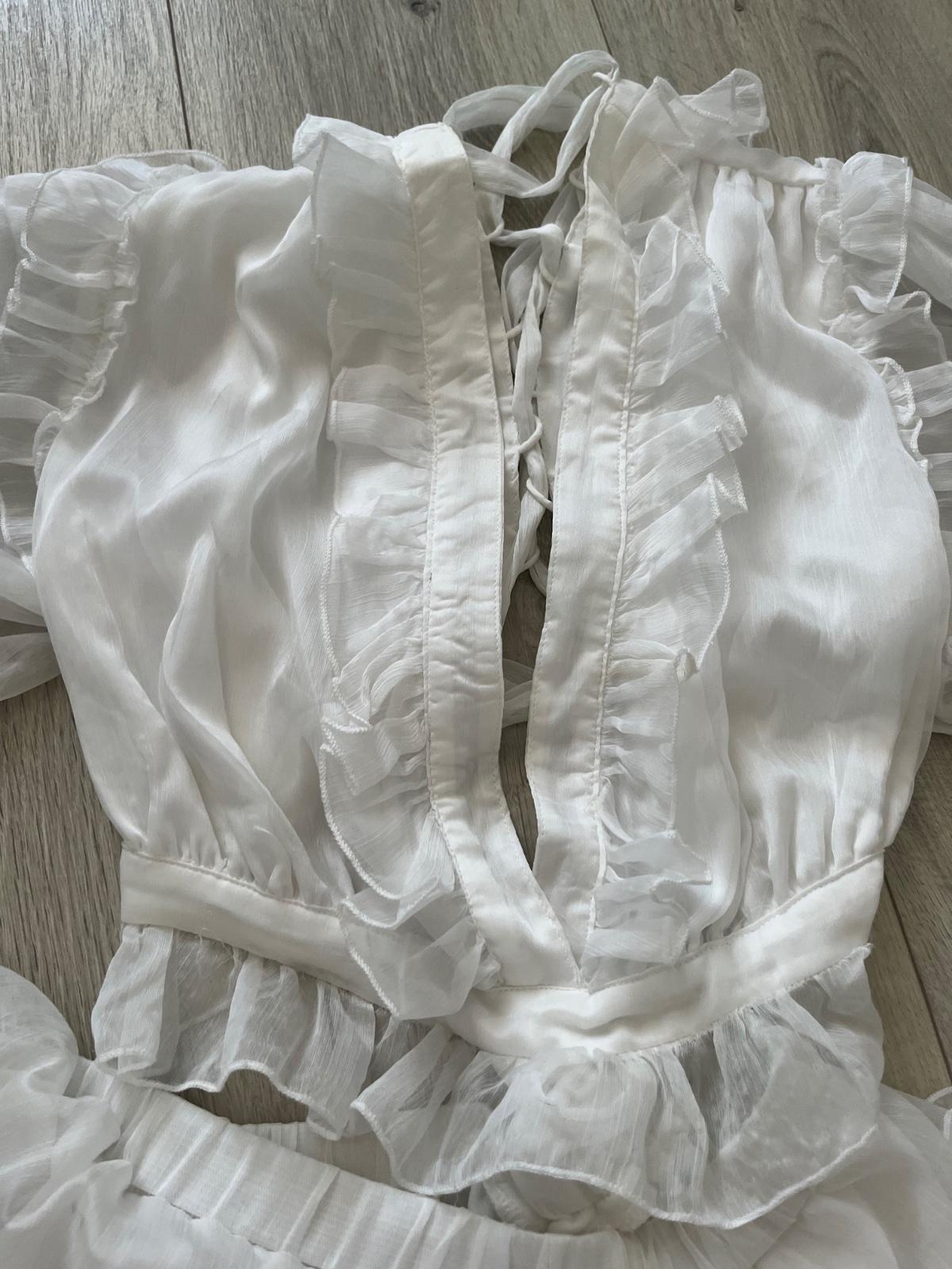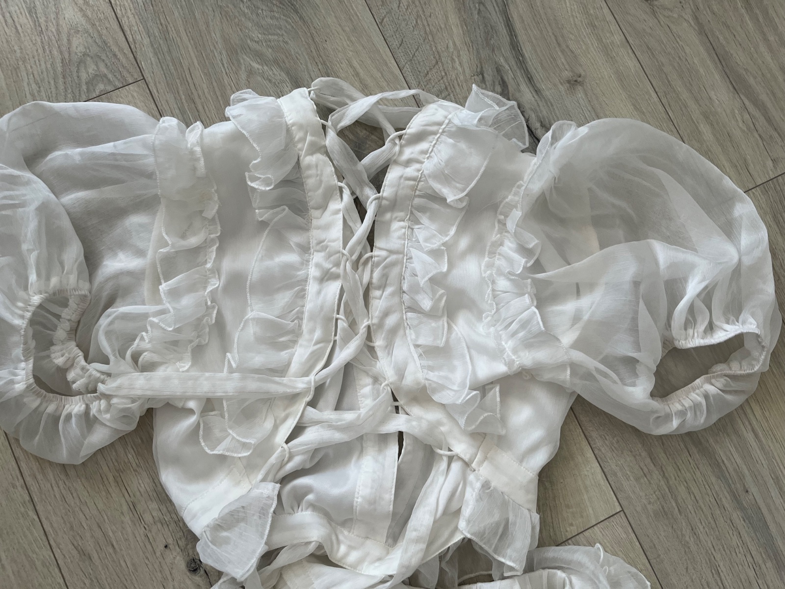 Znacka Bershka, uvedena velkost M podla mna S, dlzka 66, sirka pod pod pazuchami 36+ vzadu su na gumicku, pas33x2. Okolo krku sa daju zaviazat. Vhodne na vysku 165-170. Vpredu chyba jeden gombik. +...