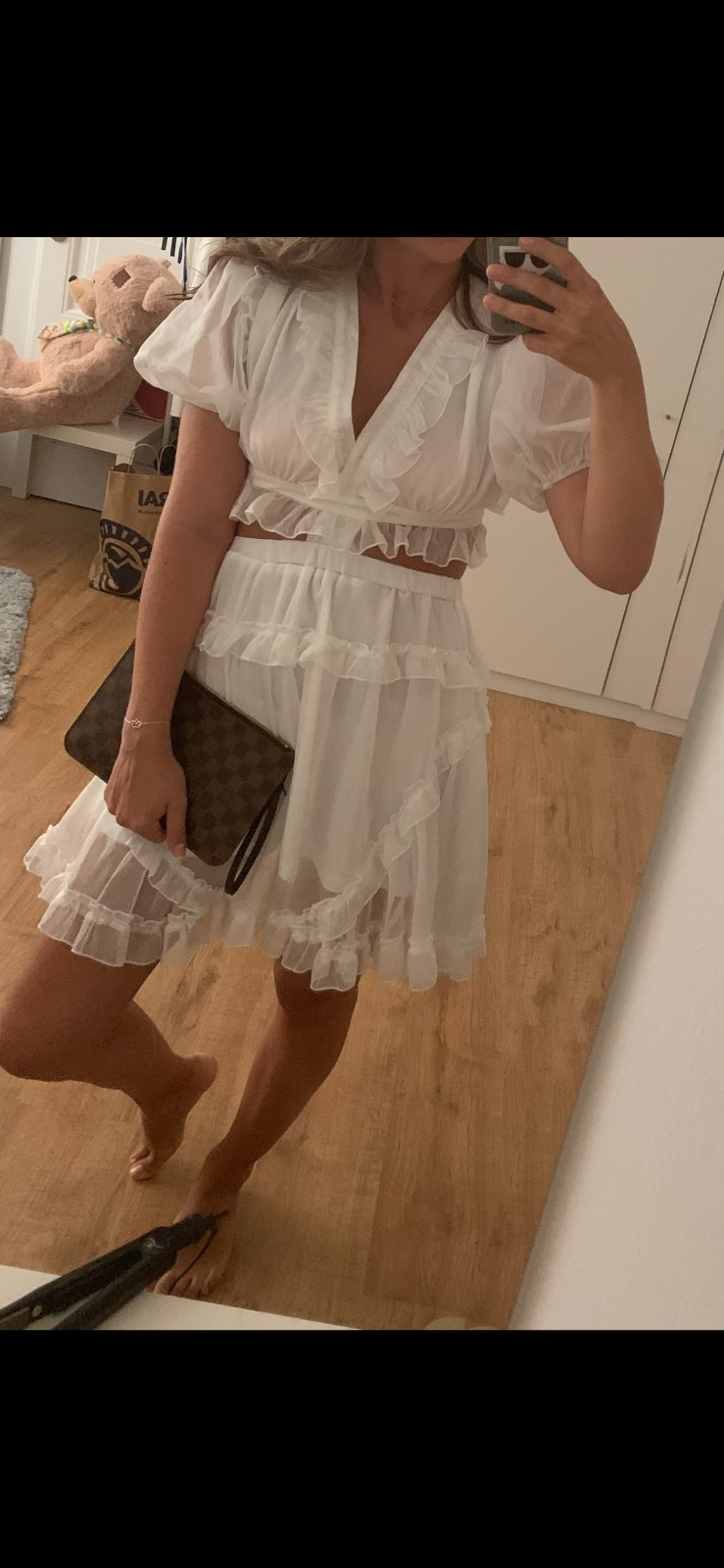 Krasne saty v top stave, pekne úkažu na postave, velkost písaná XL ale sedia tak na S, v zadu zips, mám z MK ale žiaľ nezapnem 🙈 inak by som neposúvala.