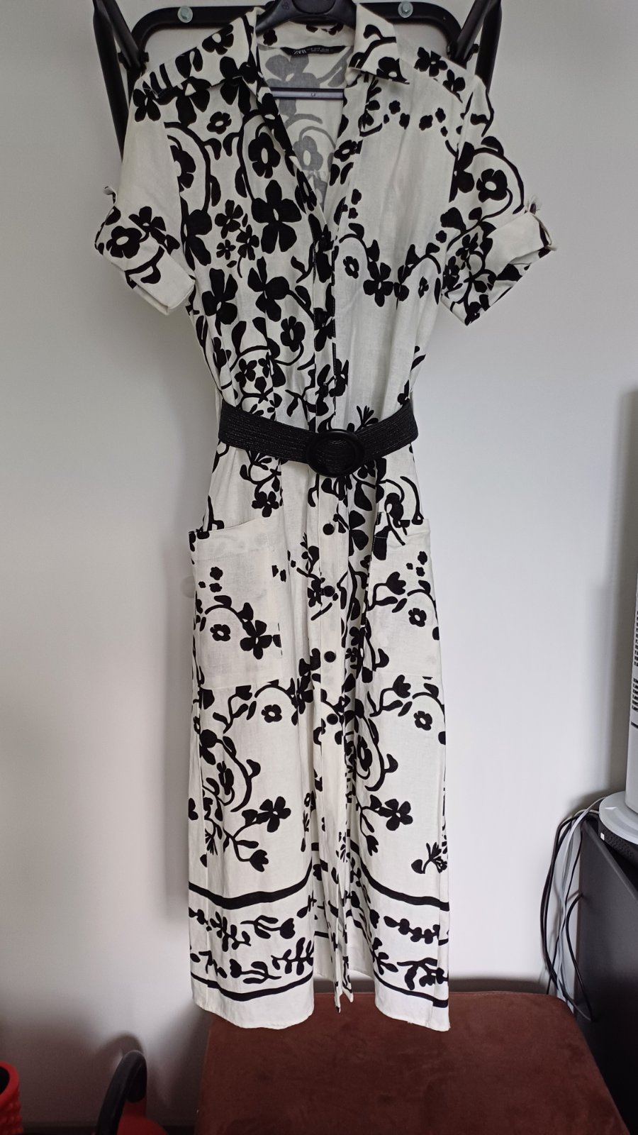 Predám nenosené dámske šaty s opaskom zn.Zara vo veľkosti S. Šaty majú vpredu vrecká a na rukávoch sú na ozdobu gombíky, viď fotky