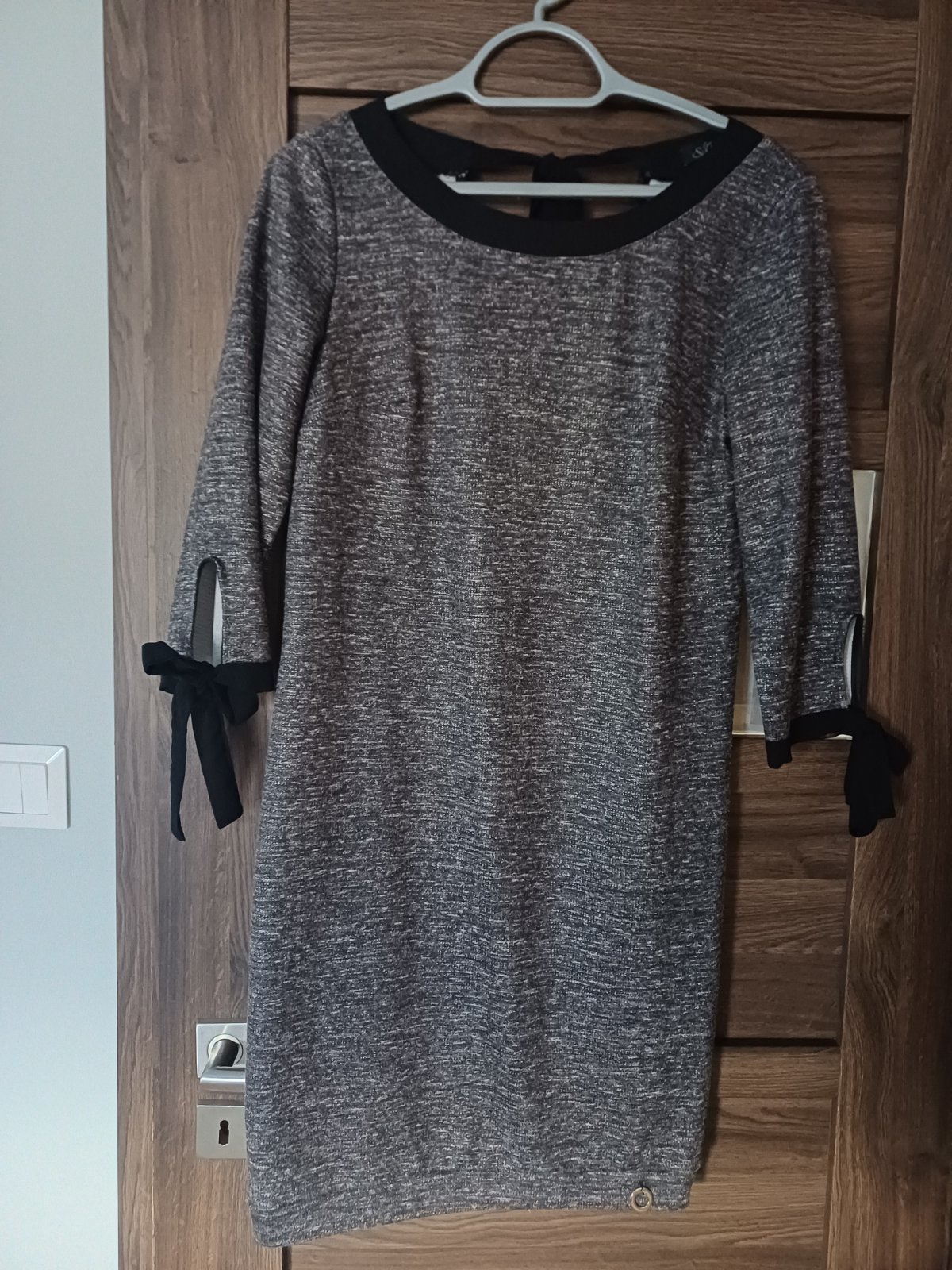 Midi šaty označené 40, ale sedia na 38, úplet, v páse strihané s tulipánovou sukňou, rukávy so širokými manžetami, elegantné, vhodné na vianočné fotenie, príležitosť i bežné nosenie. MIERY: šírka...