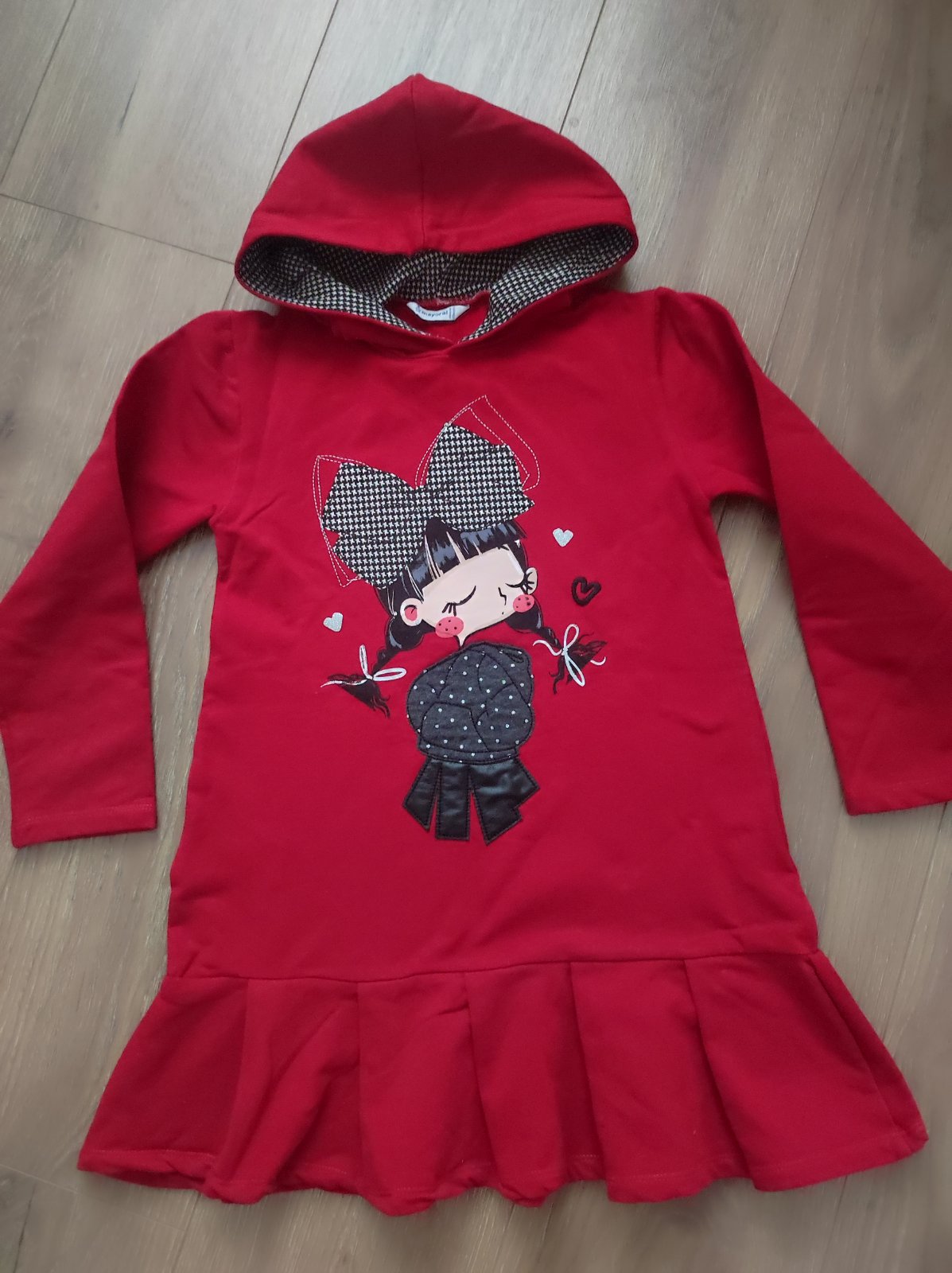 Prodám krásné šaty, španělská značka Mayoral. Příjemný měkký materiál. Šatičky jsou slavnostní, s ozdobnou aplikací na přední straně. JSOU ZE SILNĚJŠÍHO MATERIÁLU, PONOSÍTE PO CELÝ ROK! 2x oblečen...