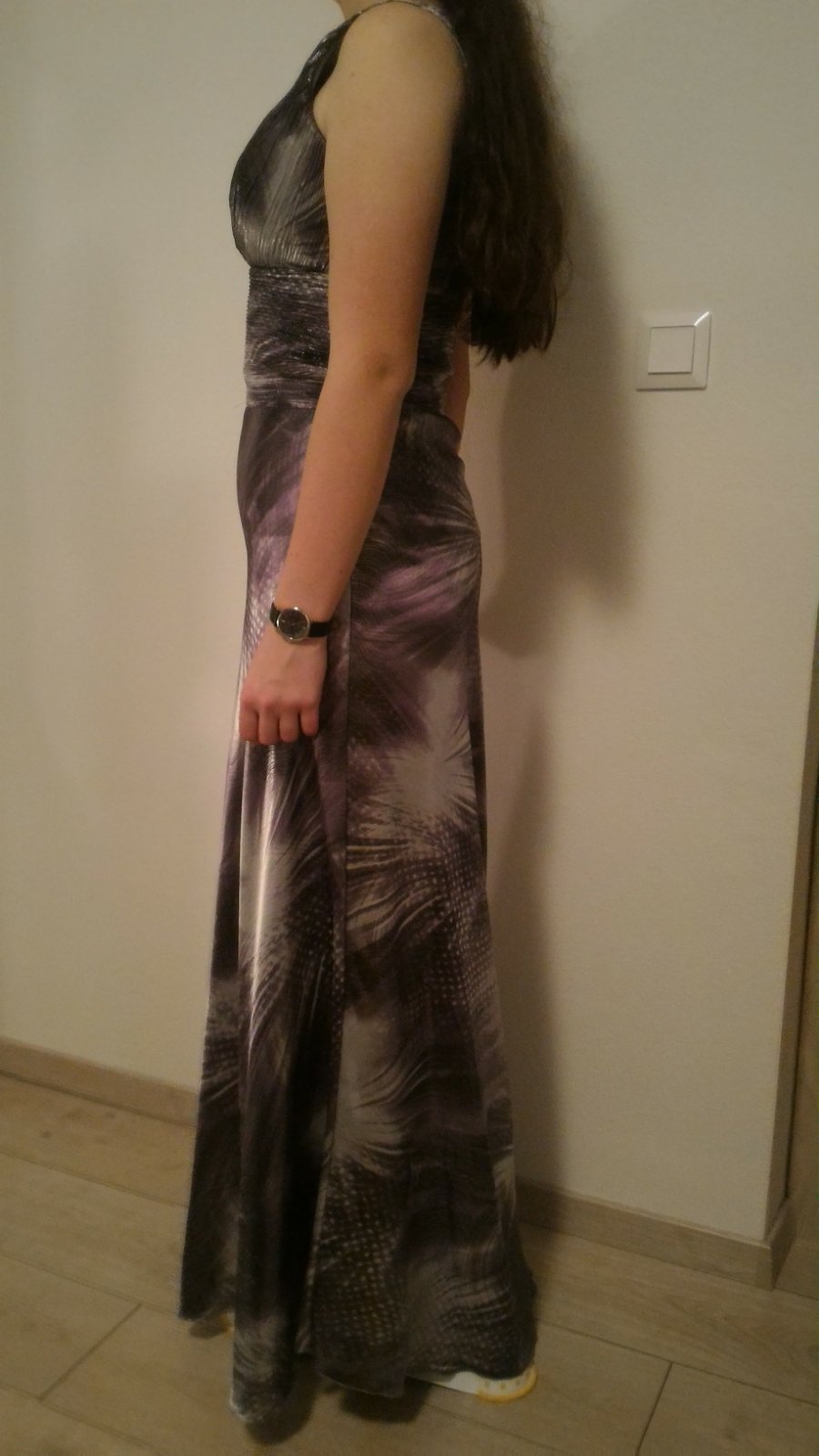 Elegantné spoločenské šaty, jedenkrát oblečené. Nepoškodené, vyčistené. Nariasená látka na bruchu skryje menšie bruško, super aj ako tehotenské. Vystužené na prsiach, zapínanie je na chrbte skrytý ...
