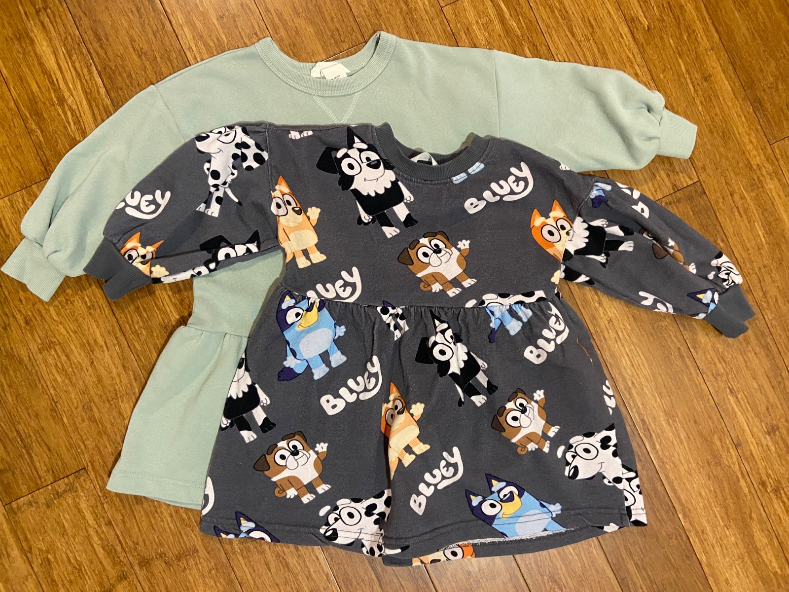 Predam saty Bluey a zelene saty v top stave obe velmi malo nosene. Cena je za obe saty. Predaj len spolu