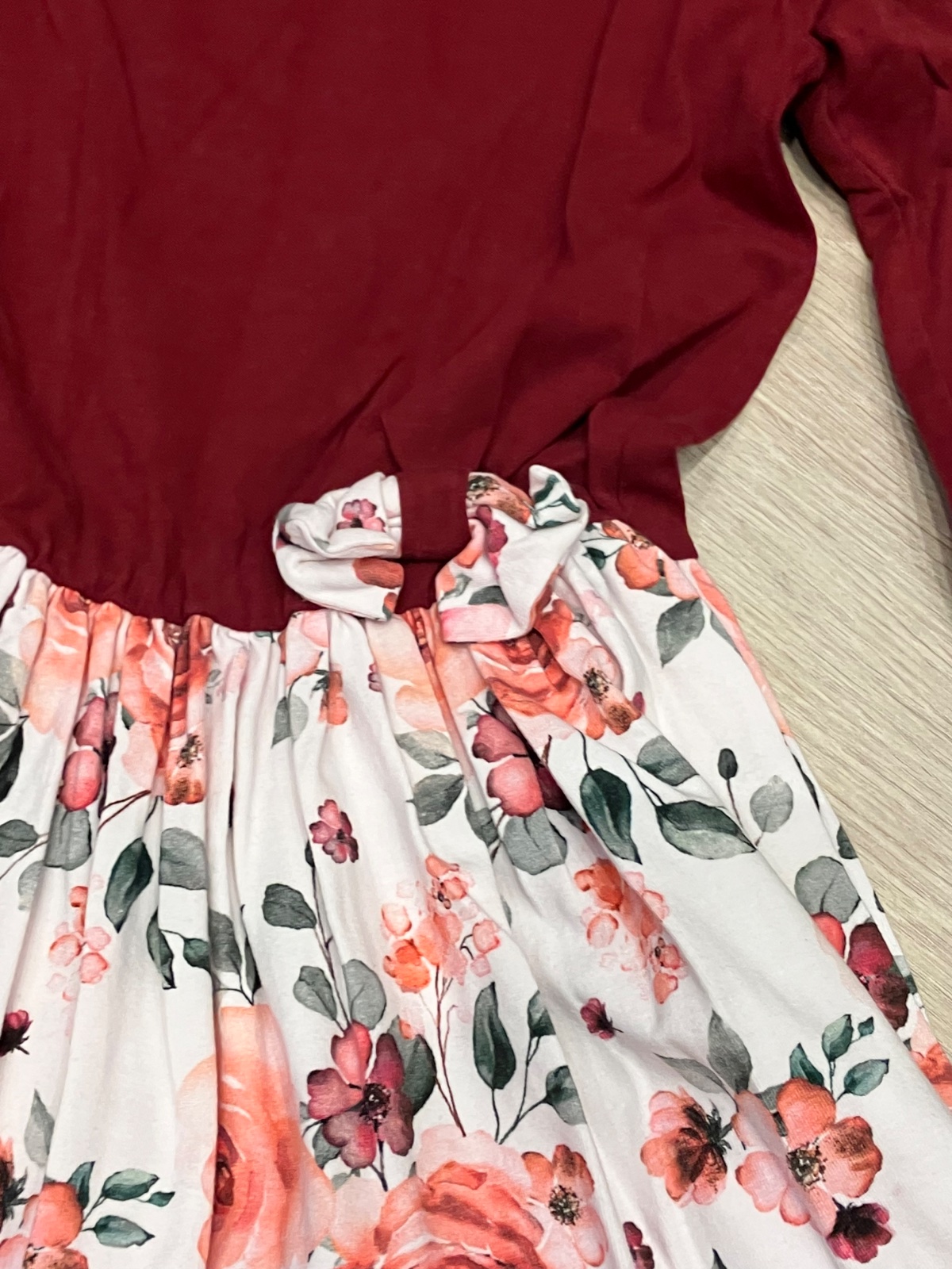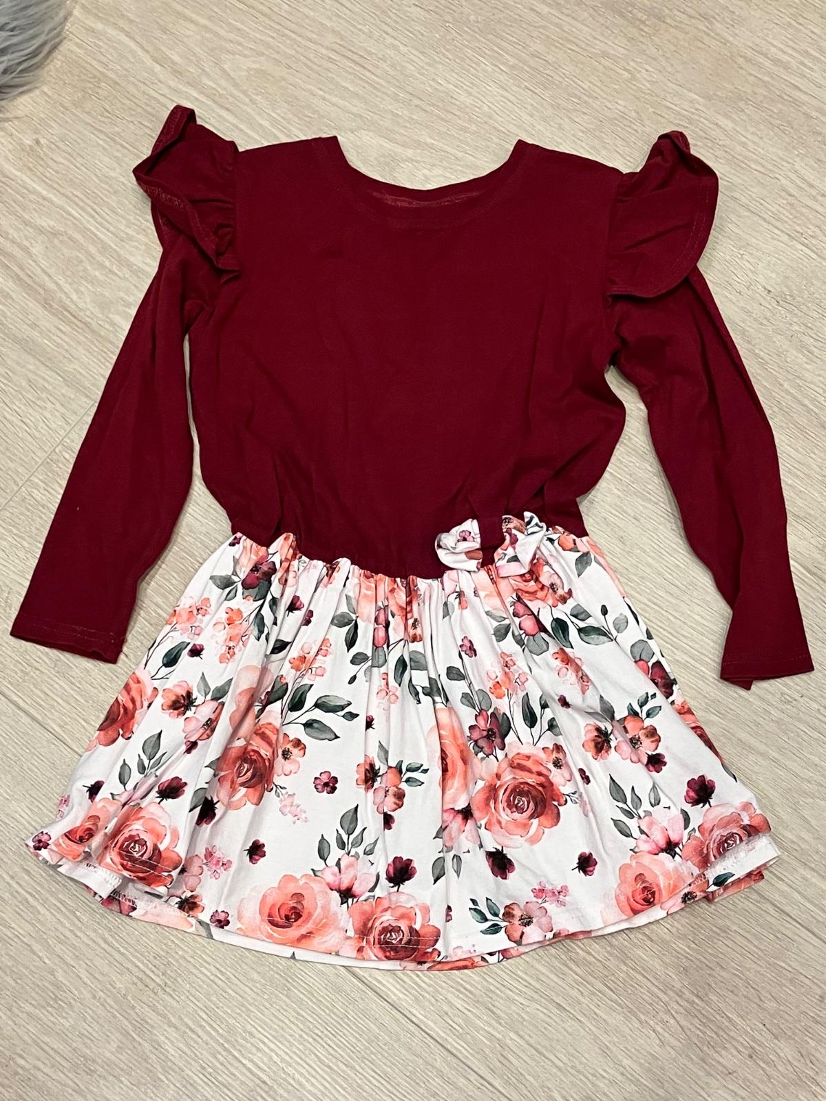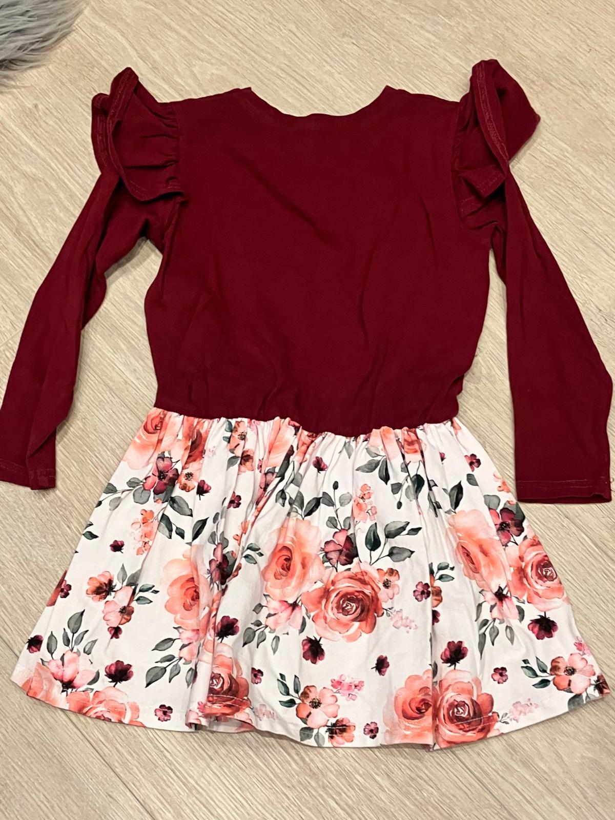Dievčenské šaty s dlhým rukávom, volány, suknička kvetovaná, elastické, veľkosť cca 116.