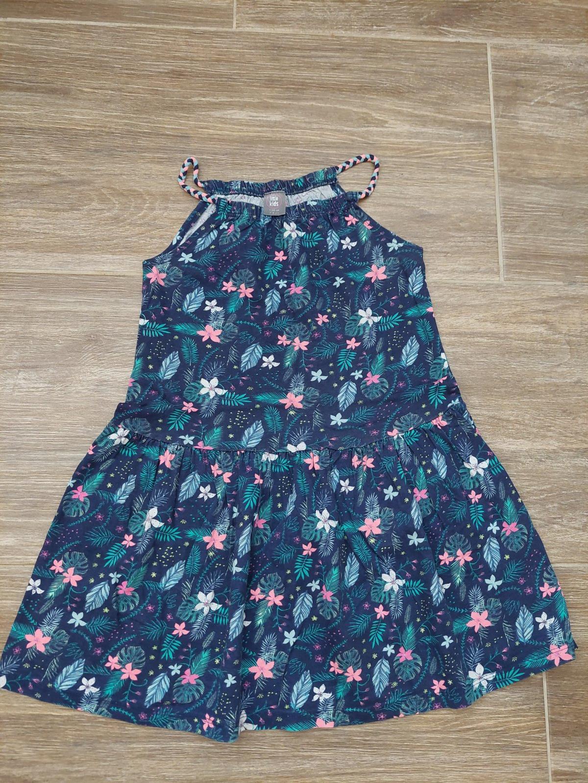 Predám dievčenské šaty veľkosť 128, veľmi lahučký materiál. Šaty boli párkrát nosené, sú v 100% stave.