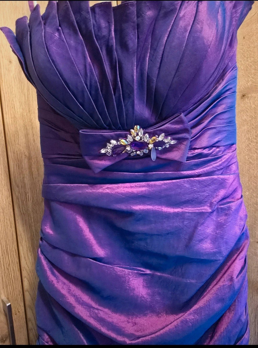 krásne tmavofialové spoločenské šaty zdobené kamienkami, celoplošne podšité, skrytý zips na chrbte, oblečené jeden krát, bez akýchkolvek poškodení, v 100% stave...celk. dl.146cm, šírka pod paz. 2x...