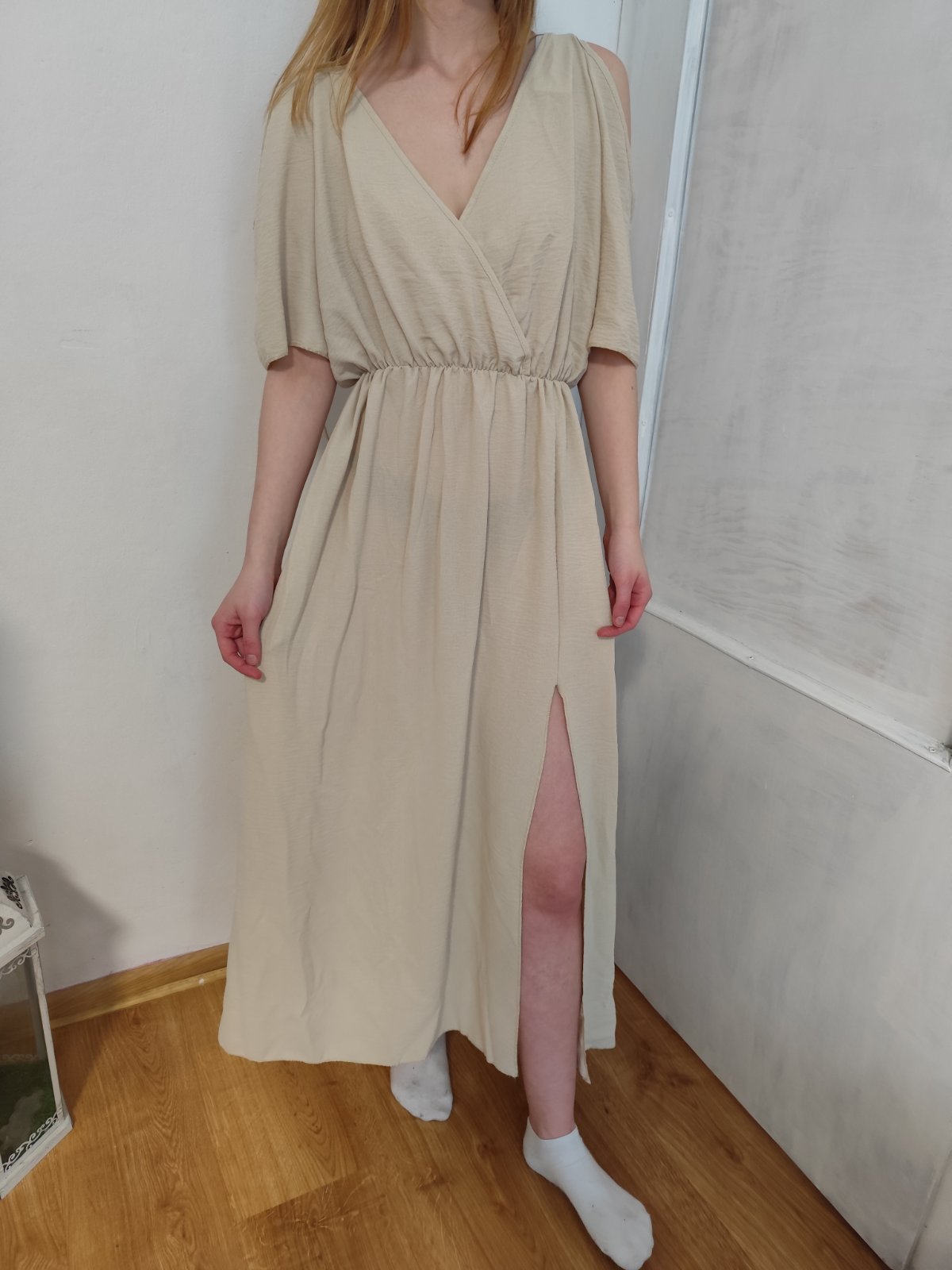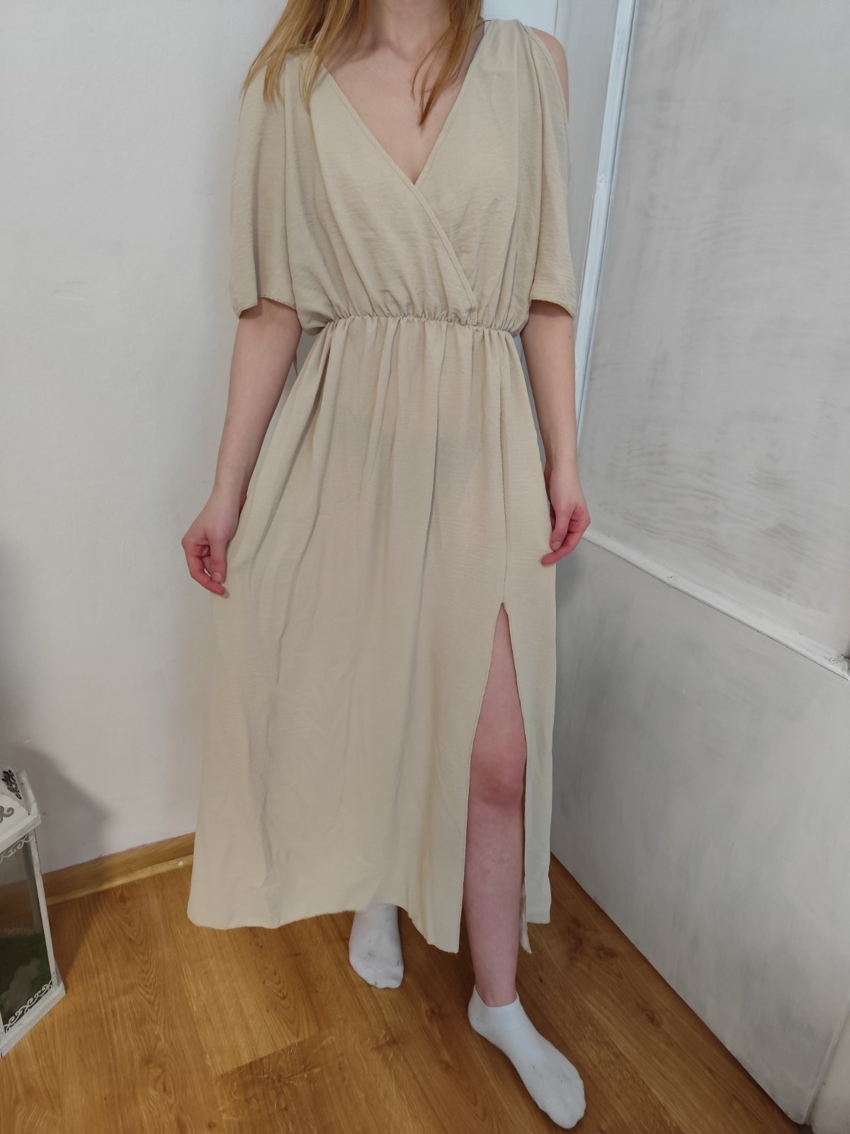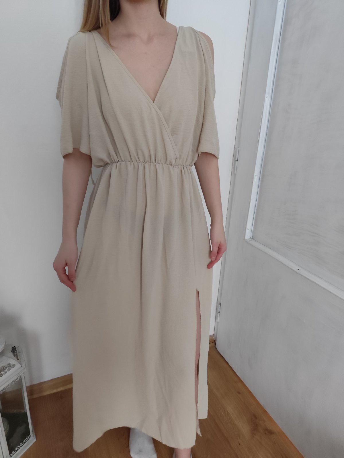SkladomPrisli mi v dvoch farbach, jedny si nechavam a béžové posúvam (totozne s modrymi na foto pre predstavu ako vyzerajú na postave) bez opaska. Boho styl. Rozparok ma nohe. Veomi sexy Sadnu od M po Xl vdaka gumickr v pase. Su univelkost. Cena 14€+posta