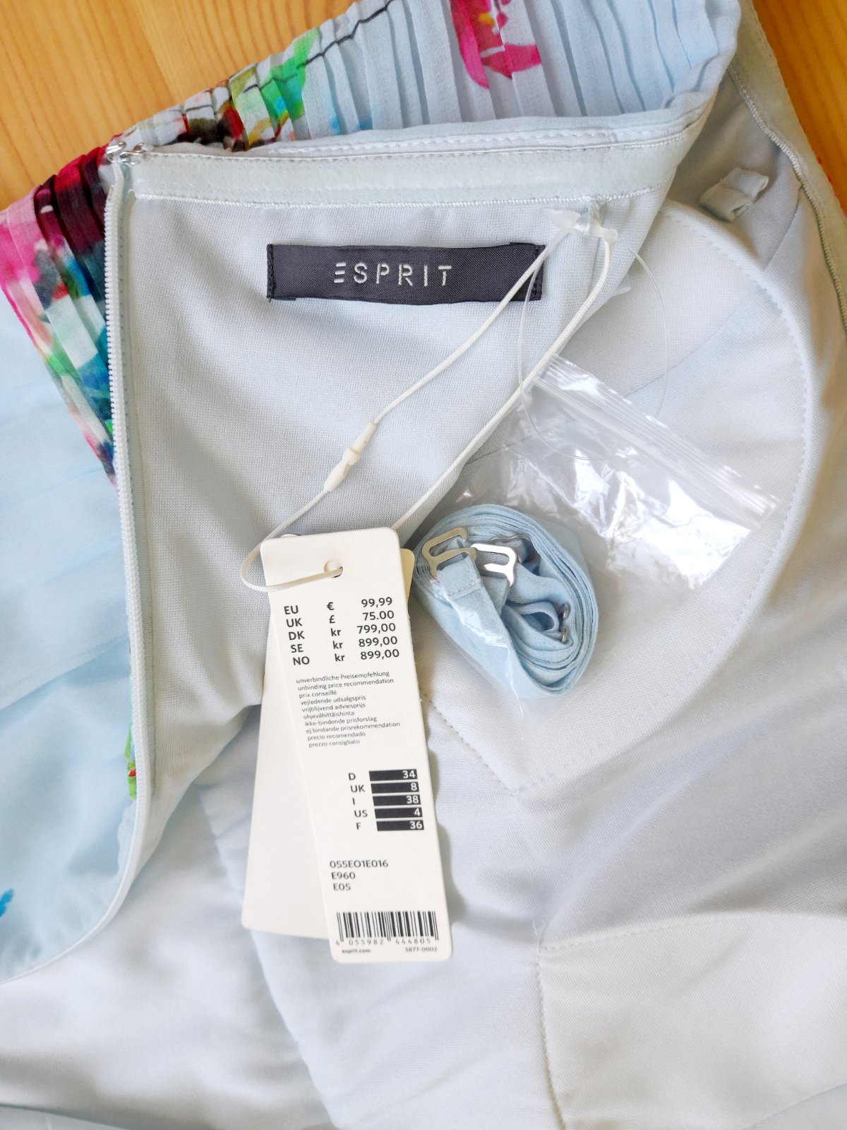 Predám nové, nenosené šaty zn. Esprit, veľkosť písaná 34, ale sú väčšie - 36, alebo S, vhodné pre veľkosť hrudníka 75B.