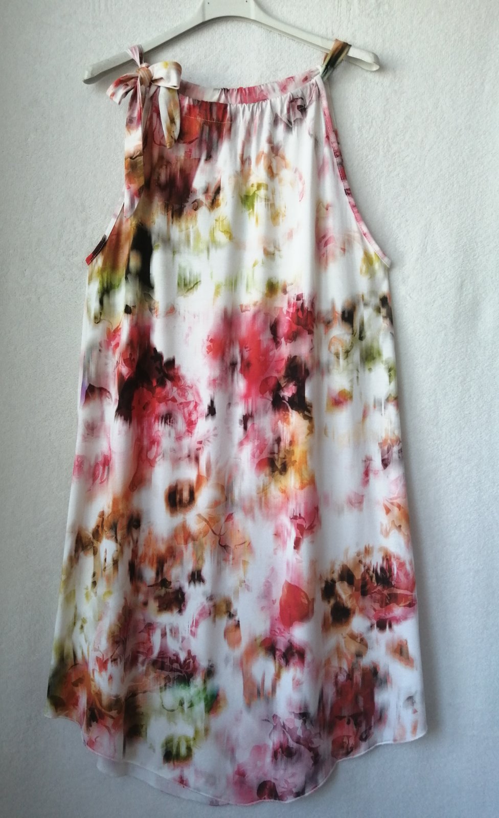 Letné šaty bez rukávov. Veľkosť 38. Raz použité. Vzadu so zapínaním na gombík. Materiál 100% viskóza.