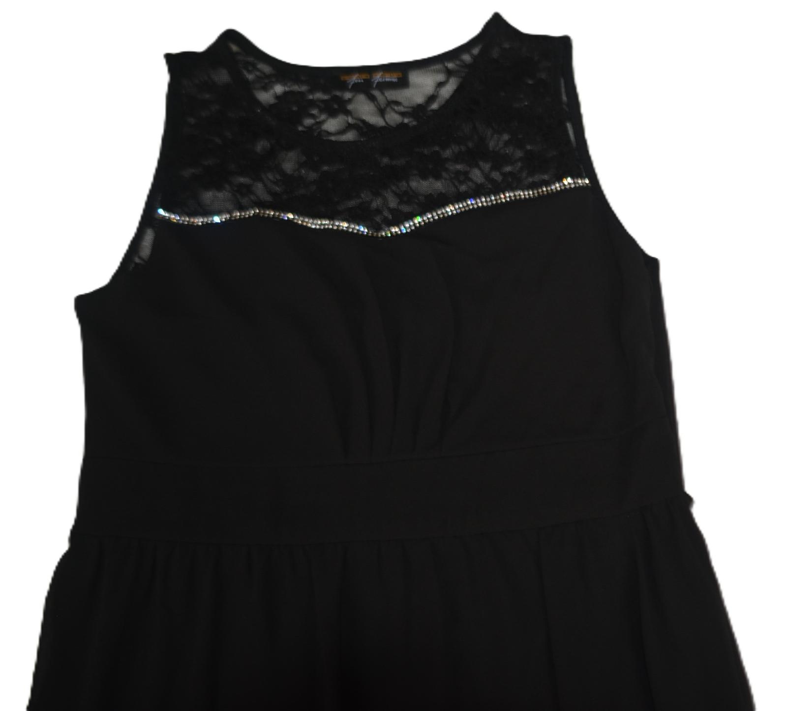 Hore vložený vyšívaný tyl a lemovaný štrasovým prúžkom