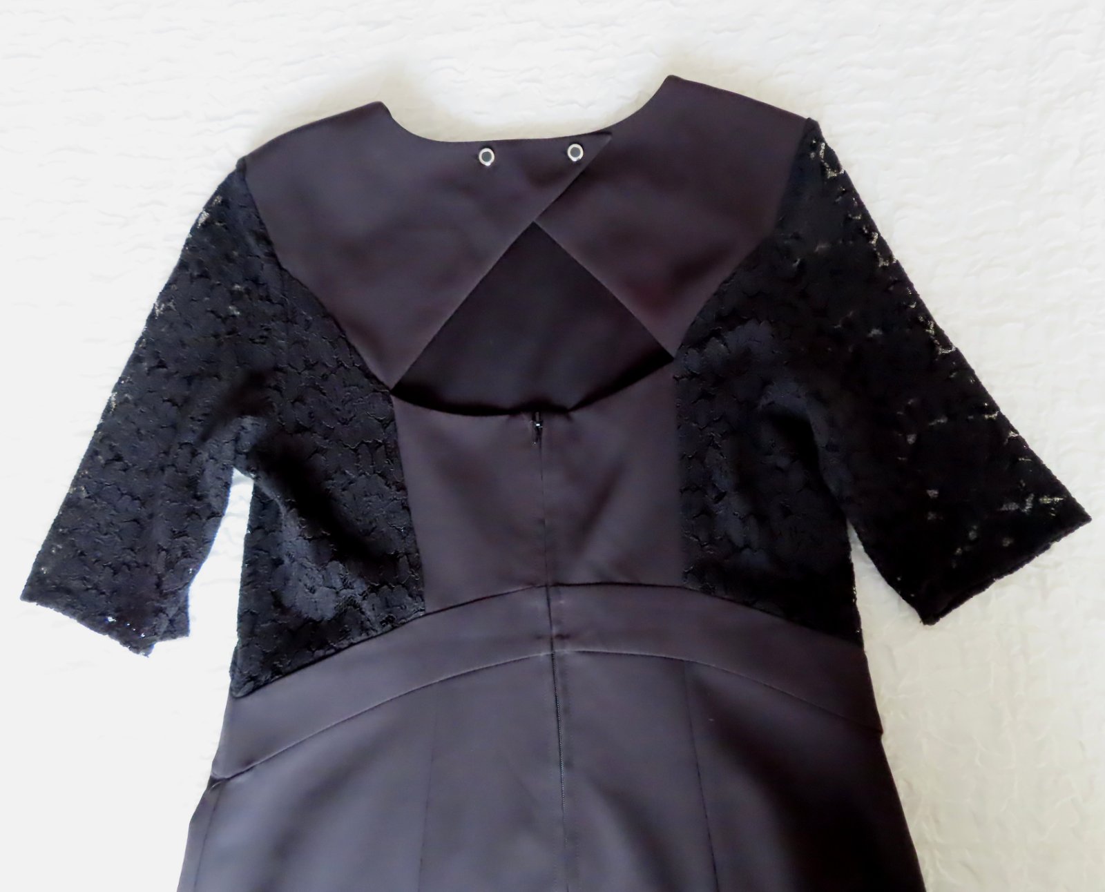 Šaty sú vhodné aj na slávnostnú príležitosť, kombinácia elastickej látky a elastickej čipky.