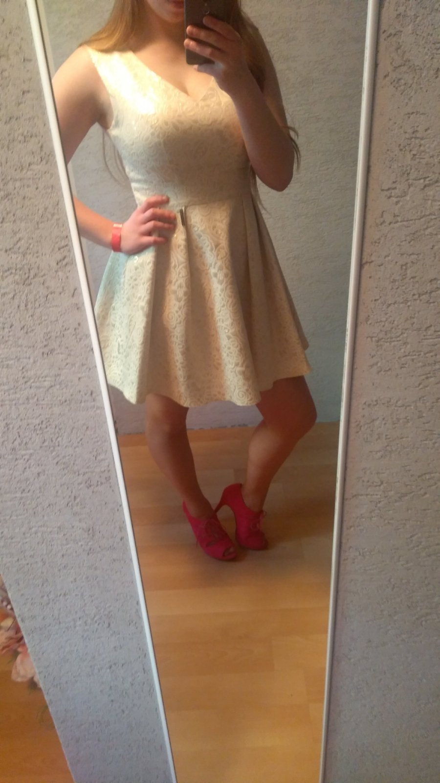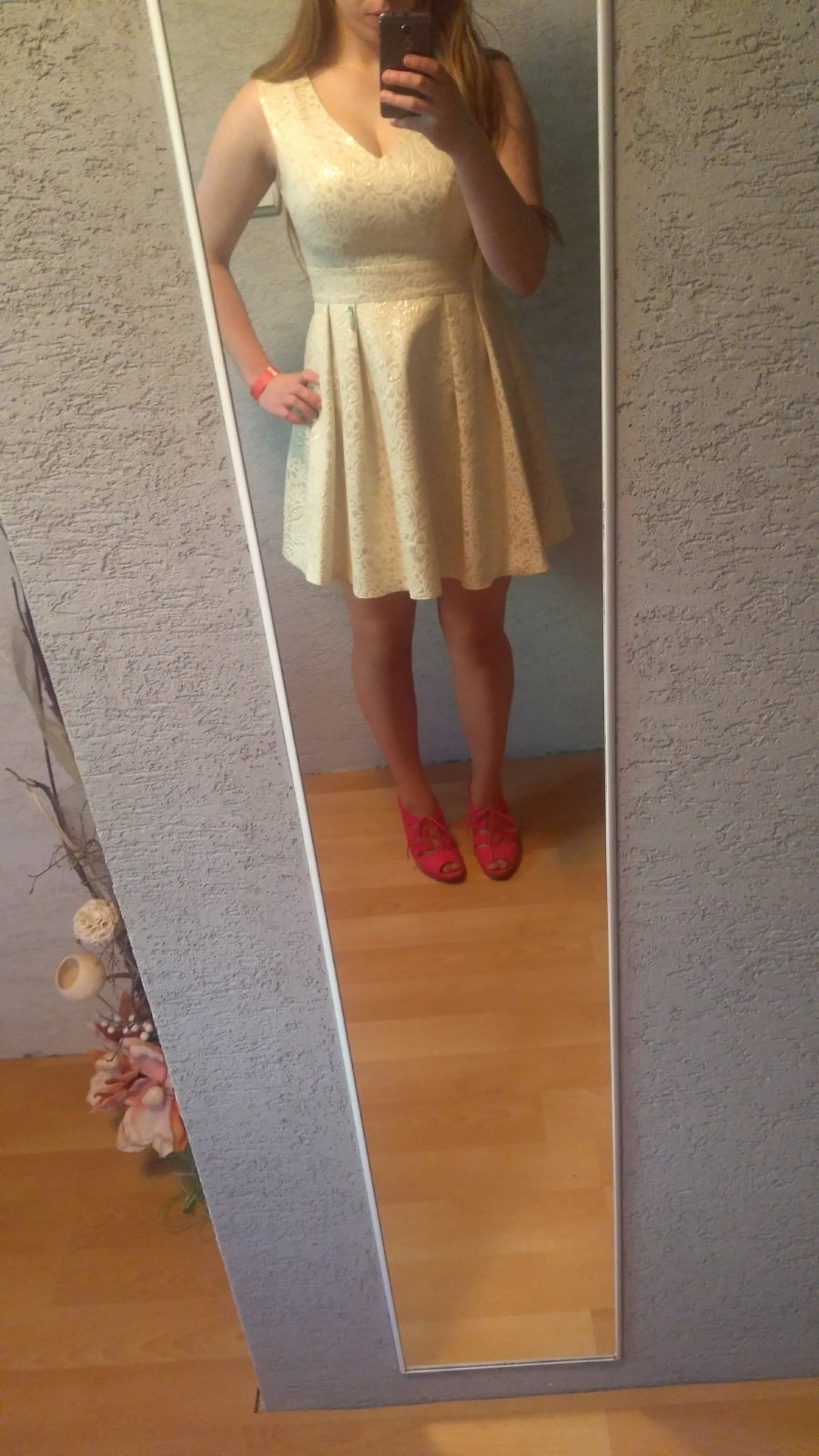 Predám tieto spoločenské šaty. Farba taká krémovo-béžovo-zlatá. Napísaná veľkosť 40 ale sedia skôr na 38. Oblečené 1 krát na birmovke. Nákupná cena 60€. Predám za 30€.
