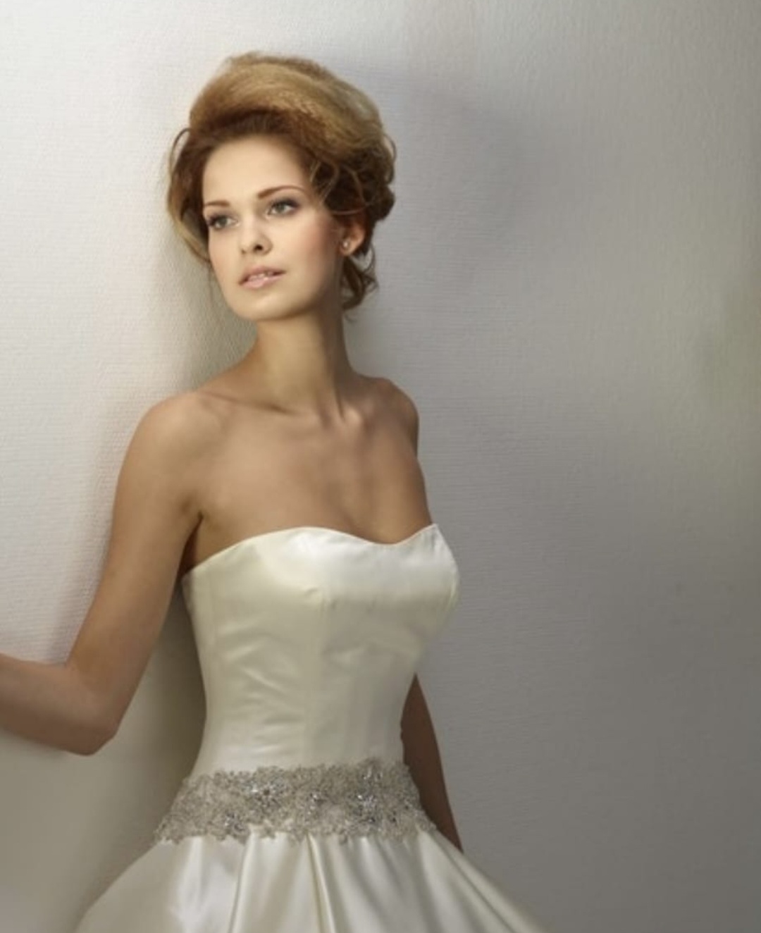 Farba je cisto biela..ramienka dosite na satach,ktore sa daju schovat a pas je nasity vyssie,nech to nepredlzuje tak trup a neskracuje suknu