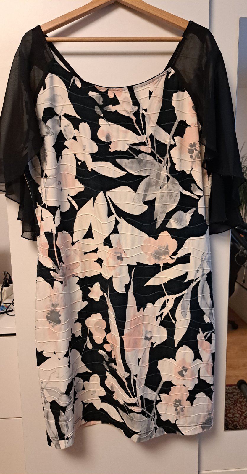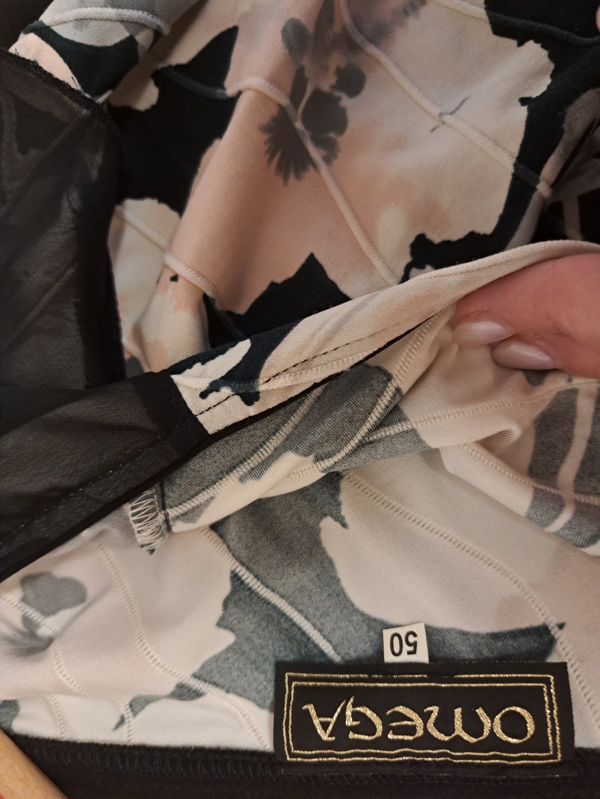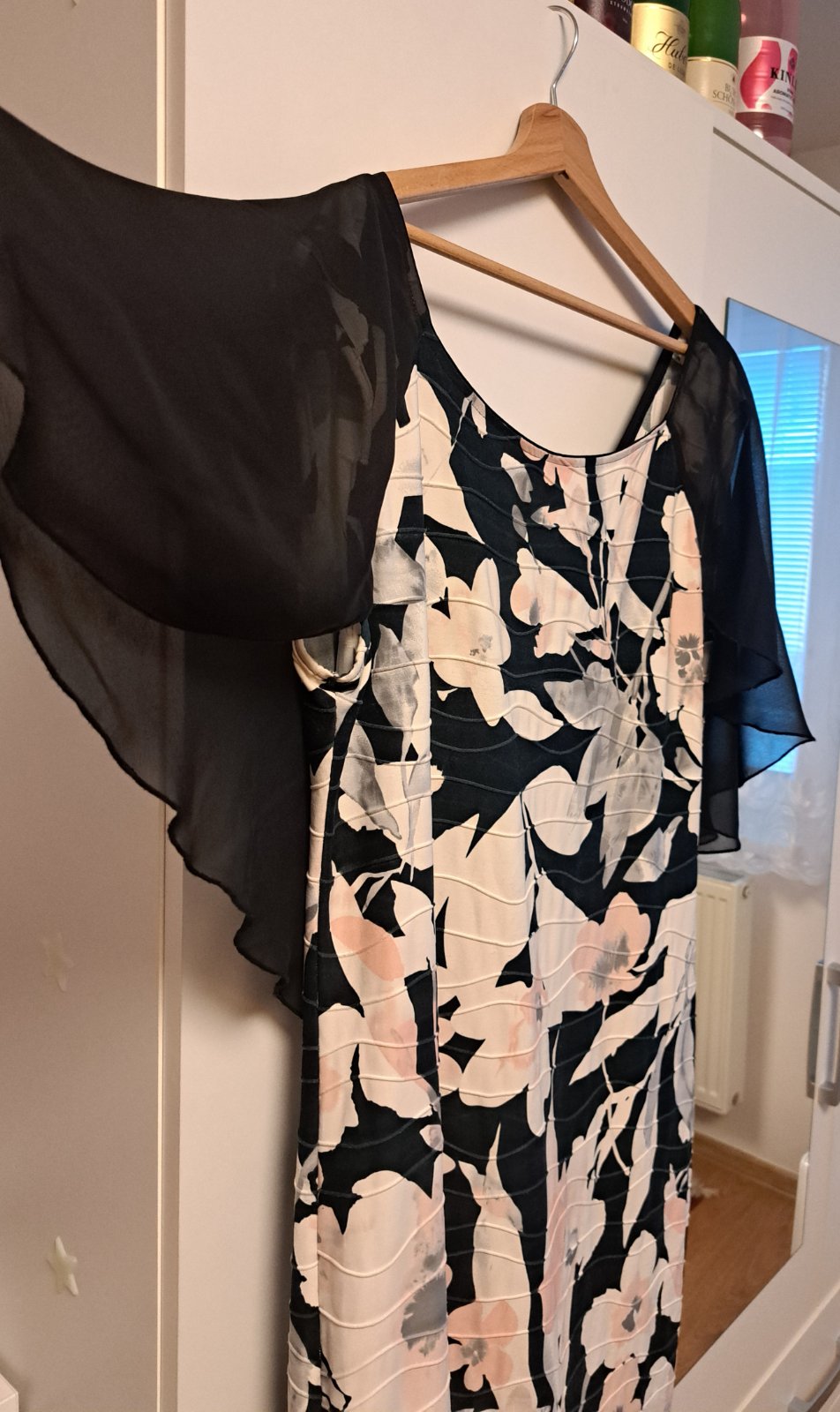 Spoločenské šaty 1x oblečené na oslave bez poškodení bez fľakov 100% stav príjemný elastický materiál ( veľkosť 50 sadne aj 48) vrchný materiál na rukávoch tyl voľne prišitý (prikrýva ramená)