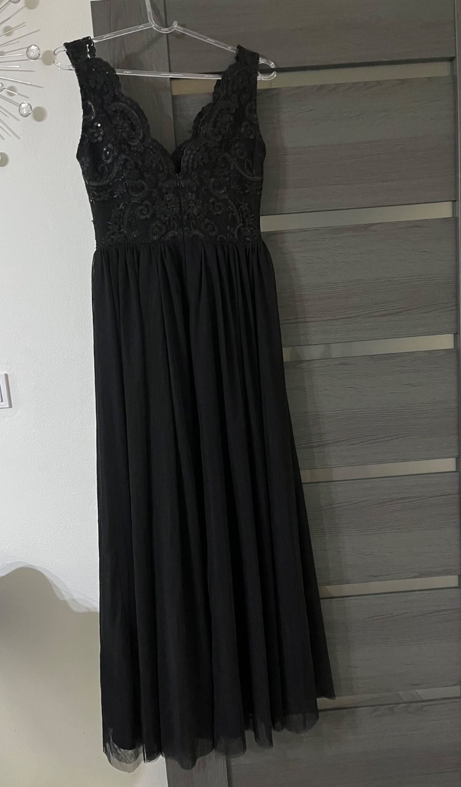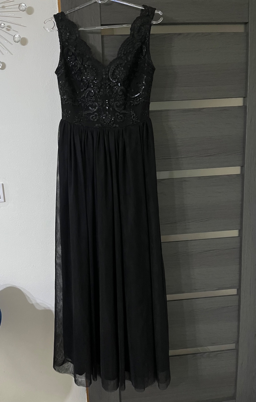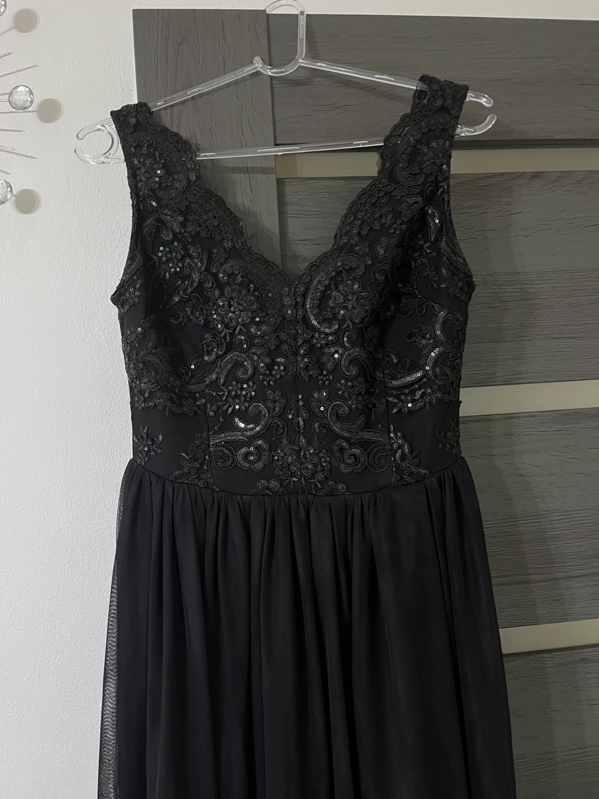 Nadherné elegantné šaty čiernej farby. Elegantné, plesové. Raz oblečené, vyčistené,bez chýb.. Sukňa z tylu, rozparok na nohe. Šaty sú veľkosť 40.