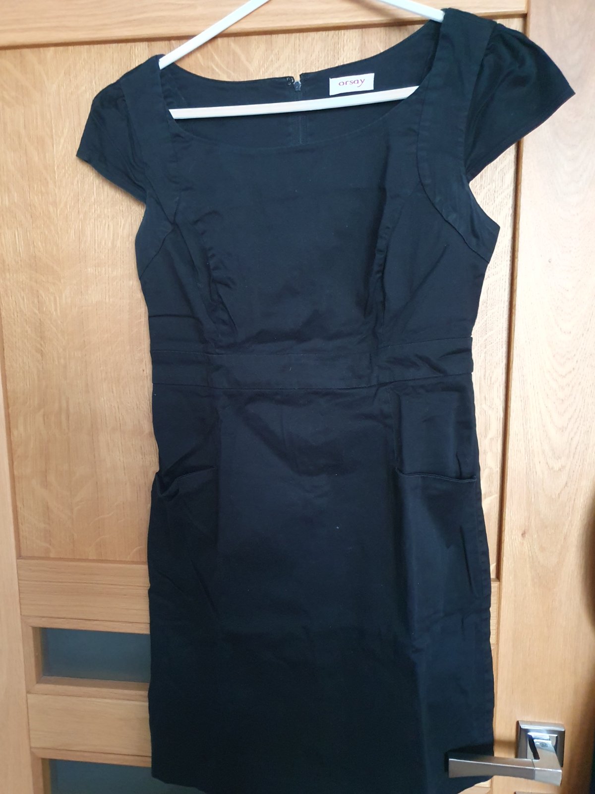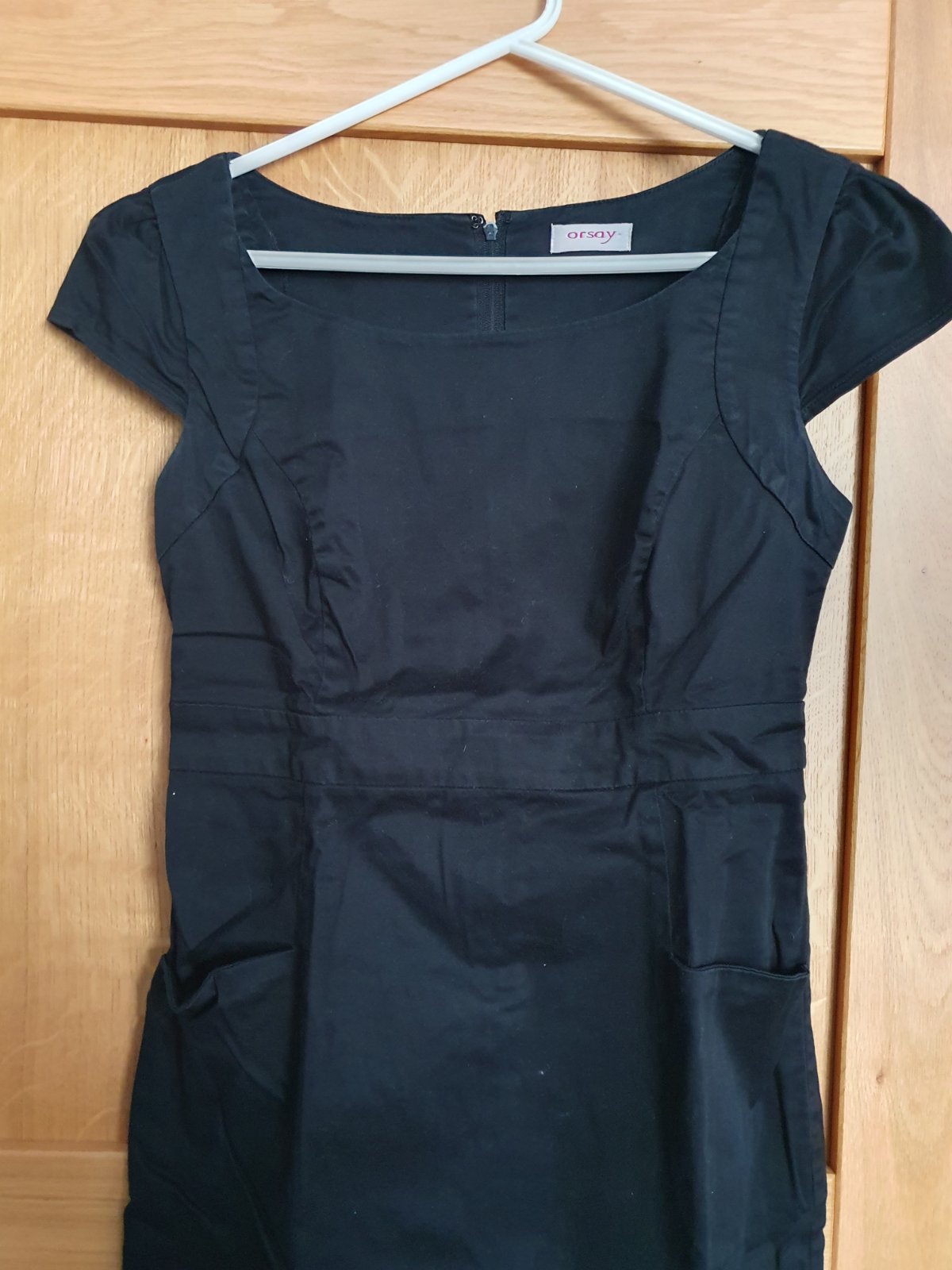Predám veľmi pekné jednoduché puzdrové šaty, s prieramkovým rukávom. Šaty sú dĺžkou niečo medzi mini - midi. Šaty majú vpredu šikmé vrecká, zapínanie je na zips vzadu. Dajú sa skvele kombinovať aj na sviatočnú príležitosť, ale aj bežné nosenie s vestou, dierkovaným svetrom či pelerinou,,ale aj flitrovým alebo čipkovaným kabátikom. Sú neposkodené, bez znečistenia.