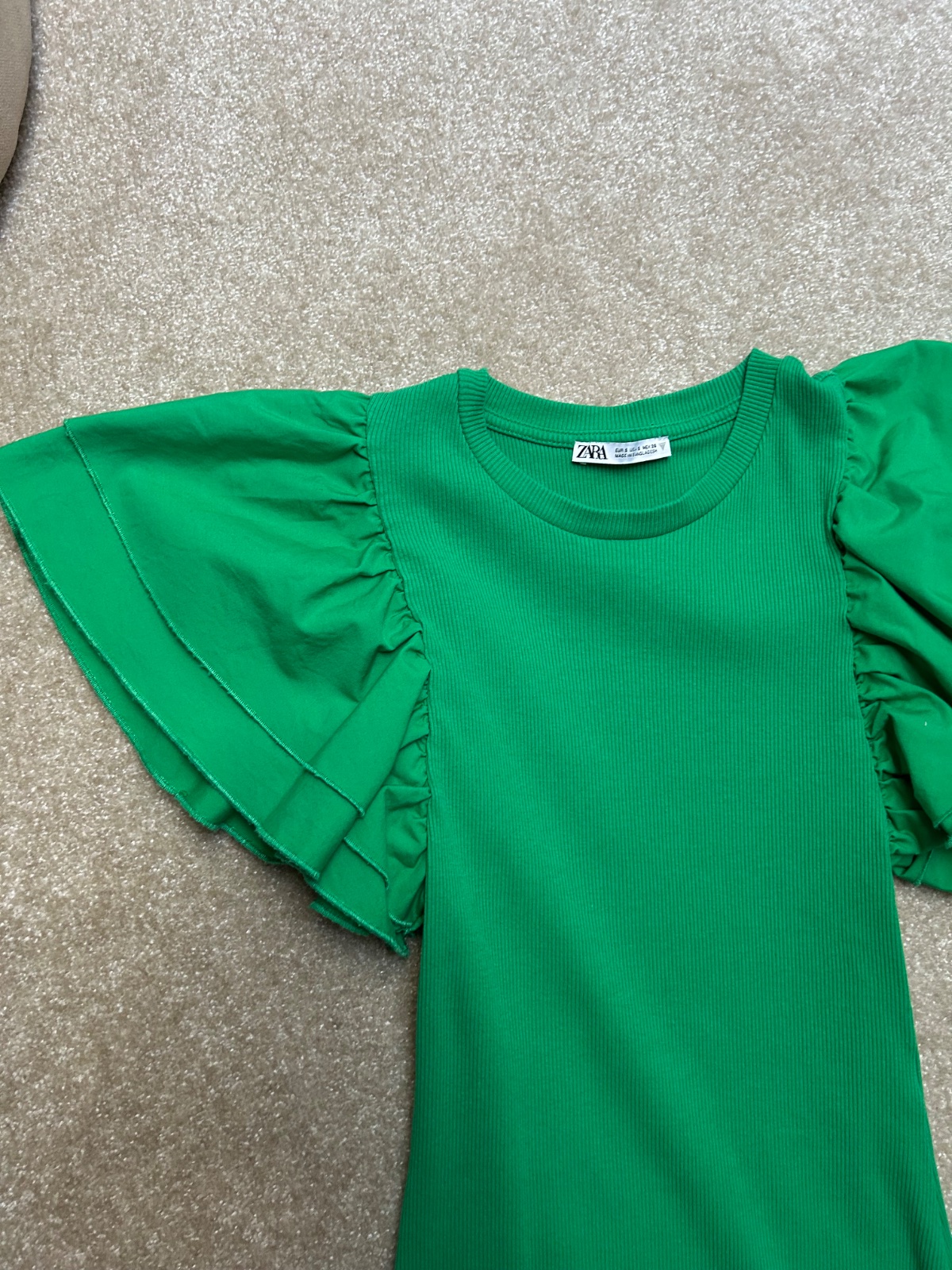 Šaty v perfektnom stave len 1xoblečené na svadbe, krásna sýta zelená farba nedá sa dobre odfotiť, veľ.S, ale kľudne aj XS/152/158, bavlnený elastický materiál.
