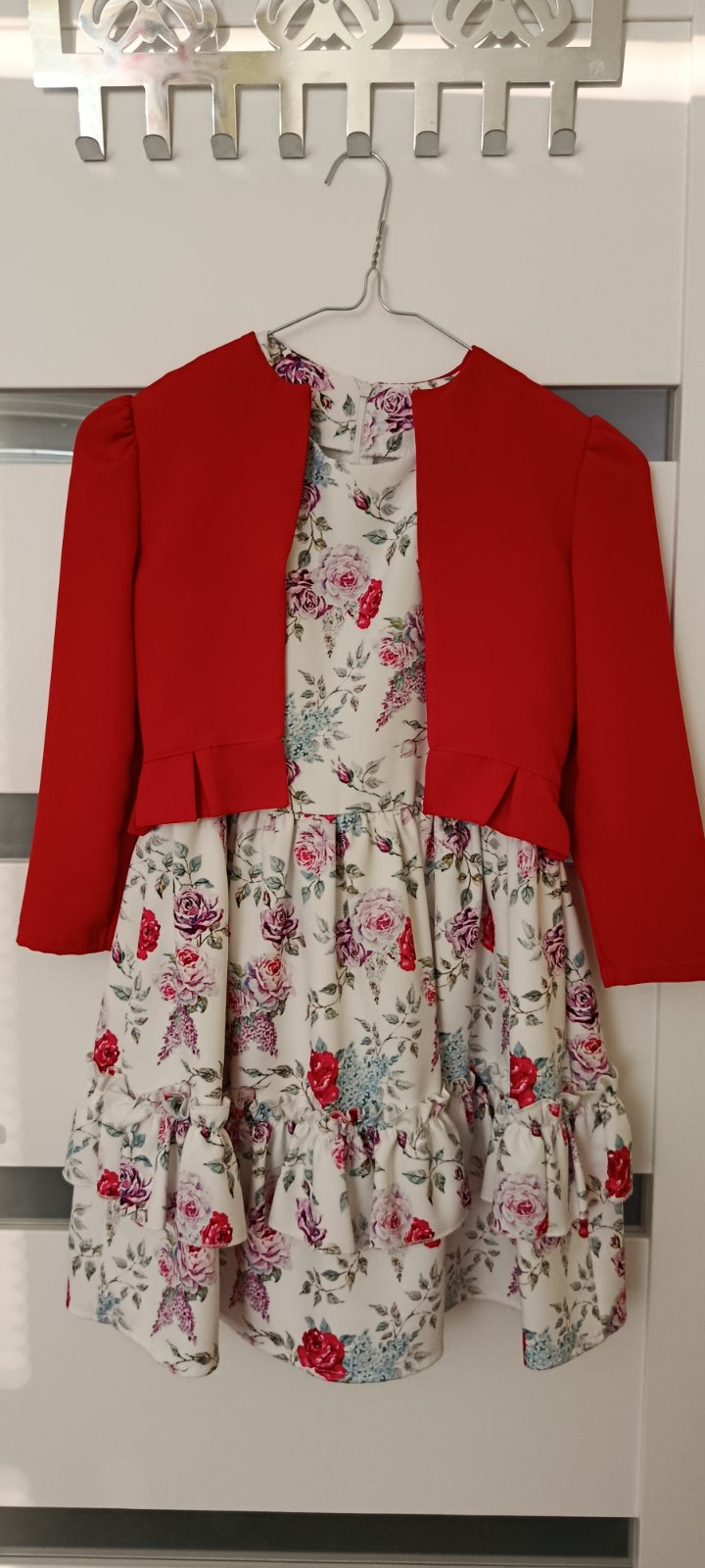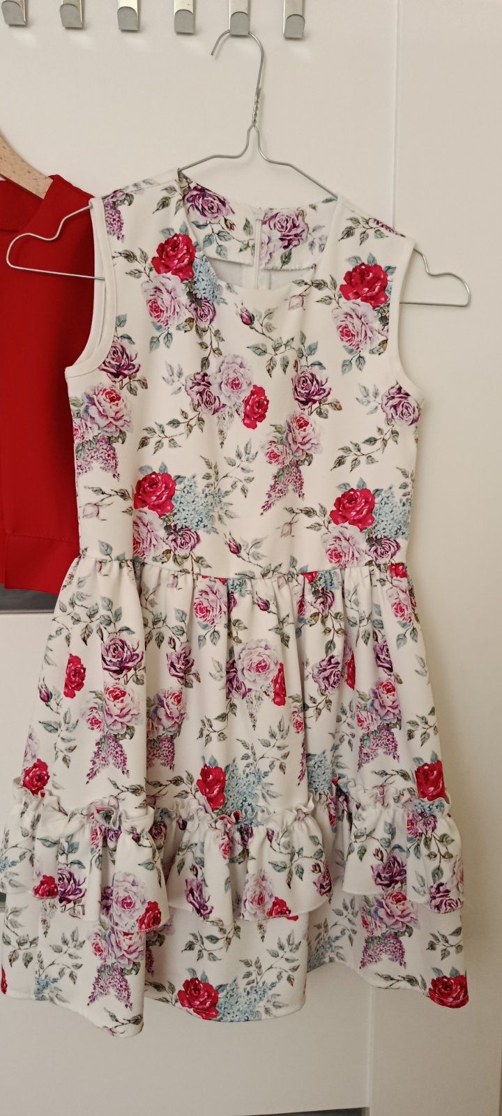 Pekné spoločenské šaty pre mladé slečny. Šaty sú s tylovou sukňou, vrchný diel (predná strana) je zdobený ružičkami. V predu majú na páse veľkú uzdobnú mašľu a v zadu mašľu na uviazanie. Sukňa vďak...