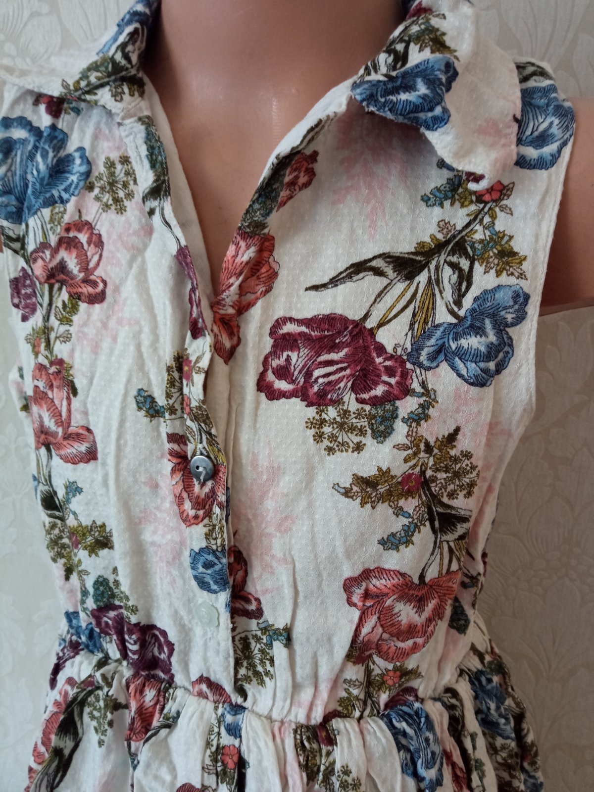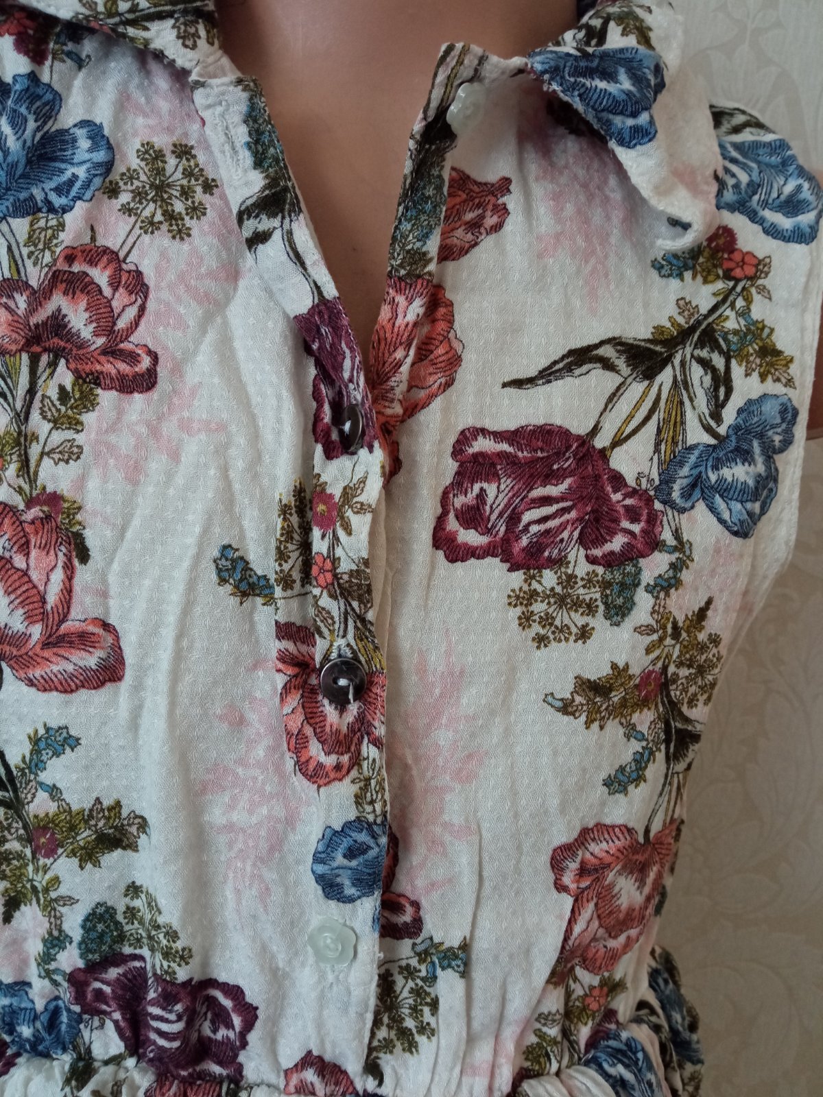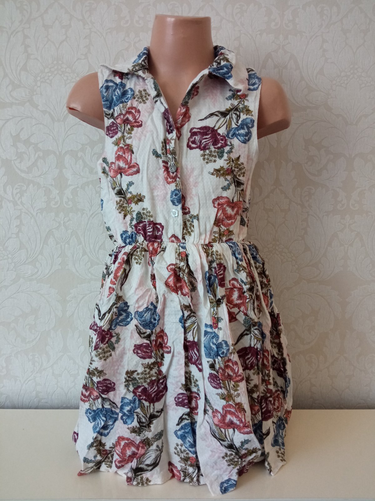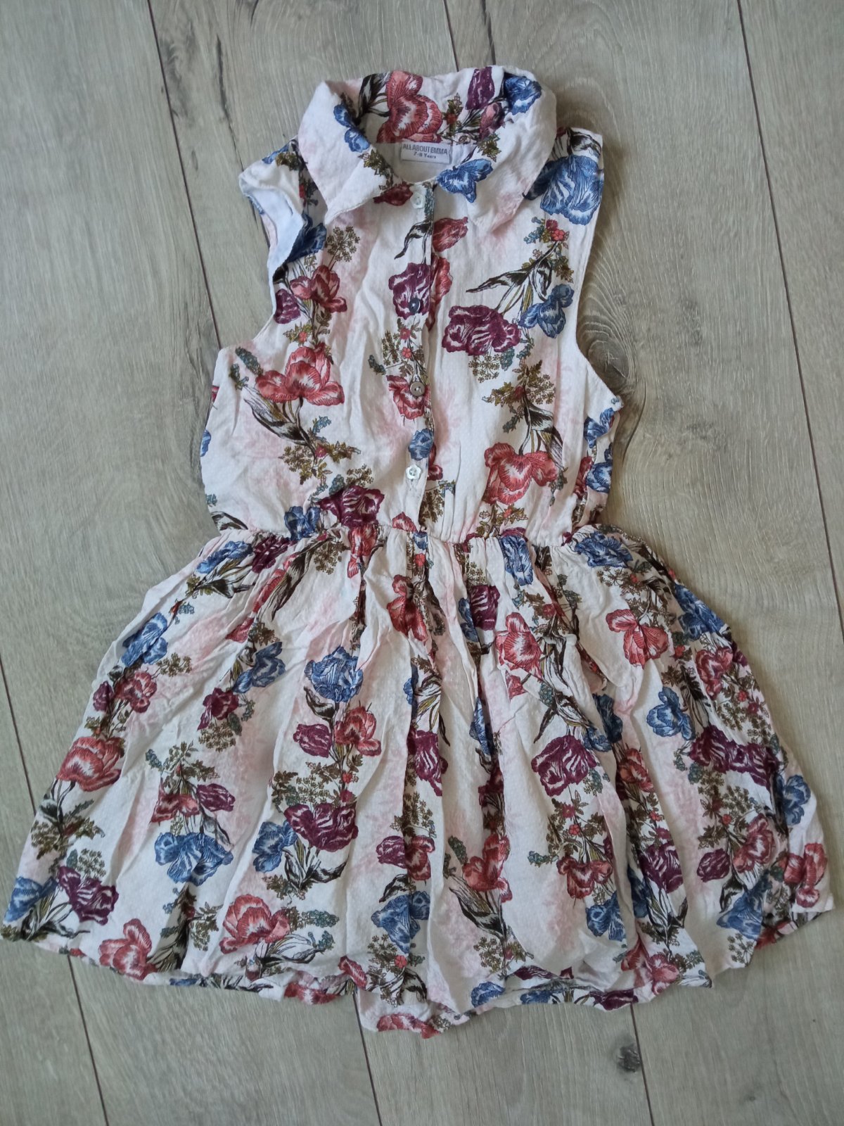Dievčenské vzorované šaty s golierom, zapínanie vpredu na štyri gombíky, driek na gumu, materiál 100% bavlna.