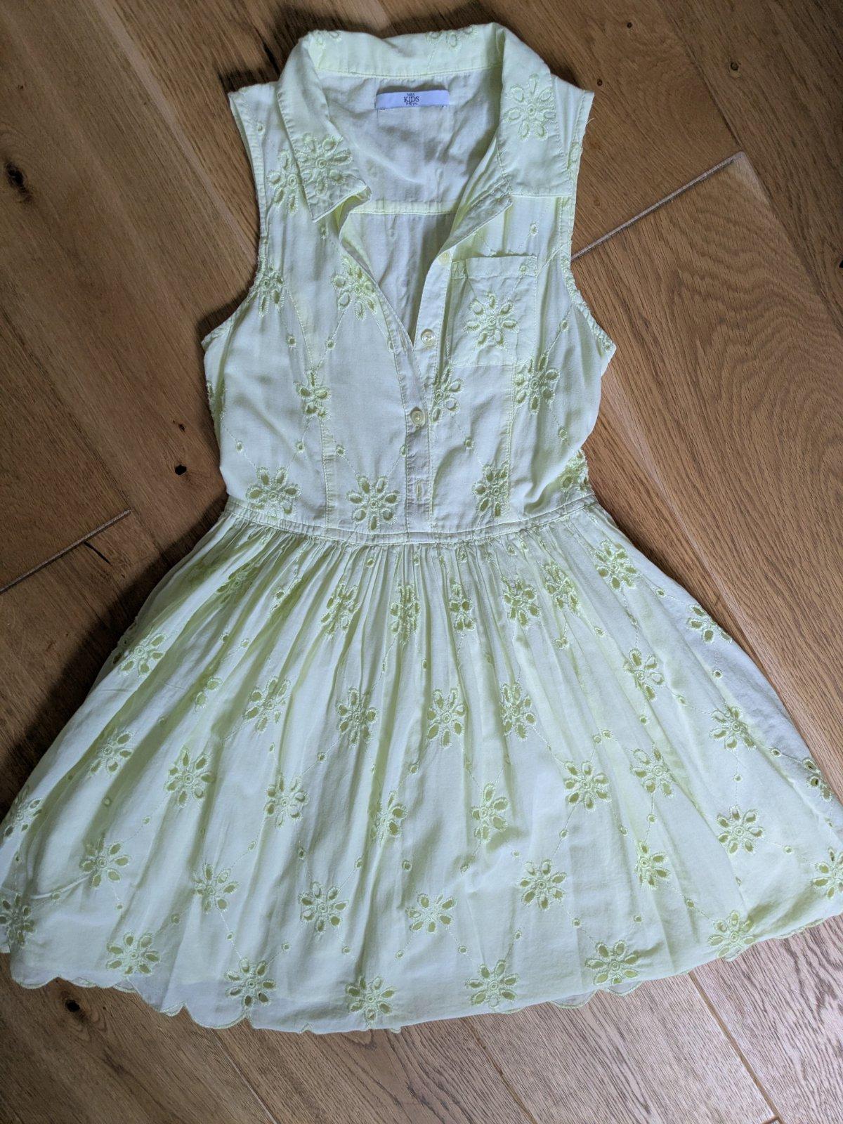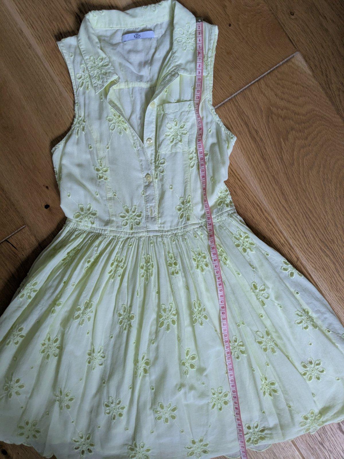Nosené bavlnené šaty v peknom stave. Farba je jemne žlto-zelená ako na posledných 2 foto.