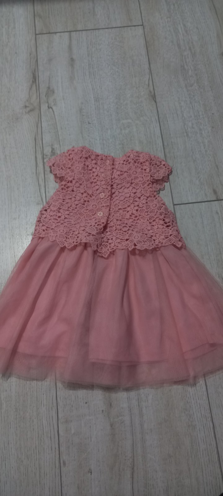 Sviatocne saticky pre dievčatka v ruzovych a lososovych farbach, raz oblečené pri krste, viskoza, polyester, dĺžka je 47 cm