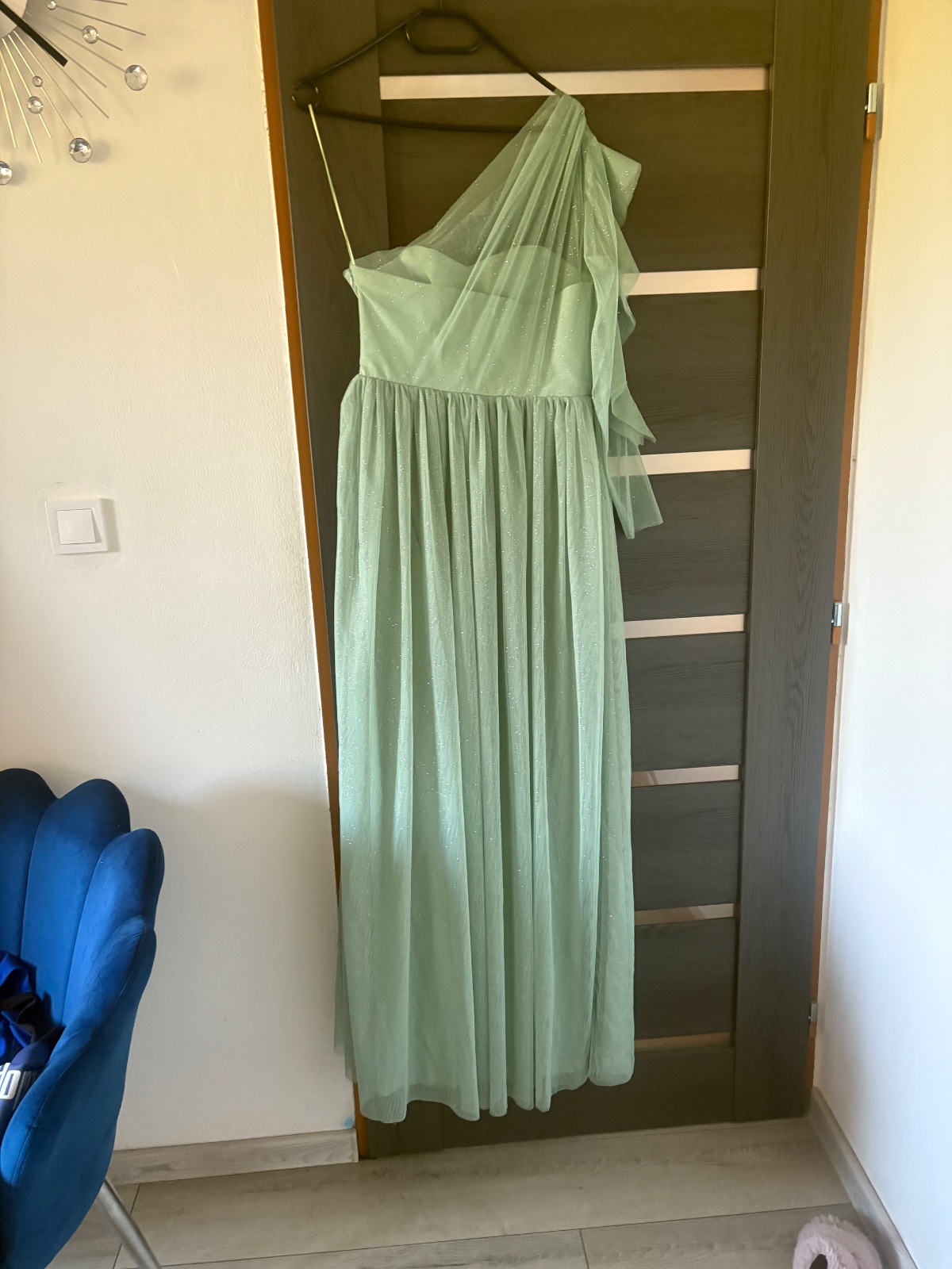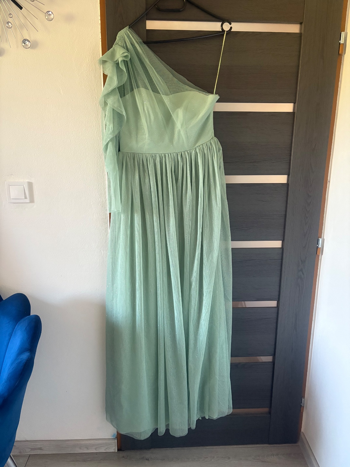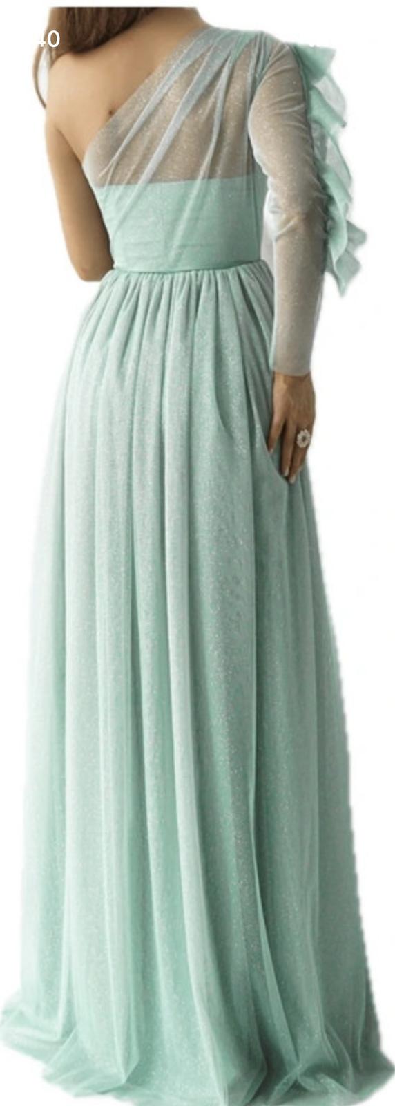 V týchto šatách zaiste učarujete každému pohľadu. Výrazný tylový rukáv, neprehliadnuteľné trblietky a rozparok sa postarajú o elegantný, noblesný a zmyselný vzhľad. Šaty sa na bočnej strane zapínajú zipsom. Trblietky nie sú všité do materiálu, prirodzene mierne opadávajú. Šaty sú nové s visačkou.
