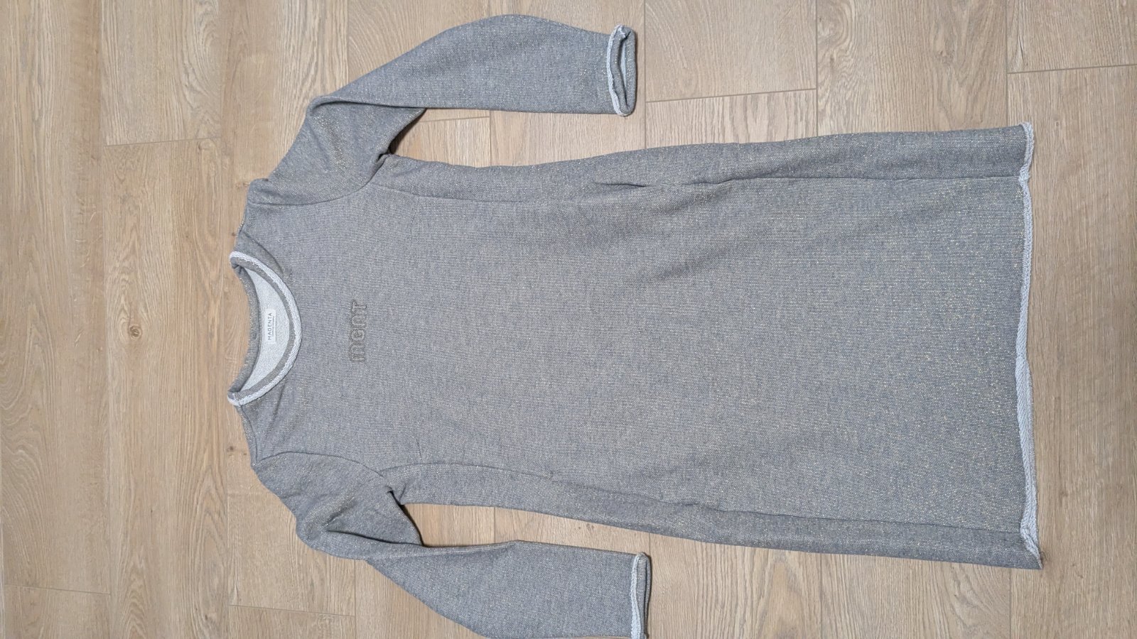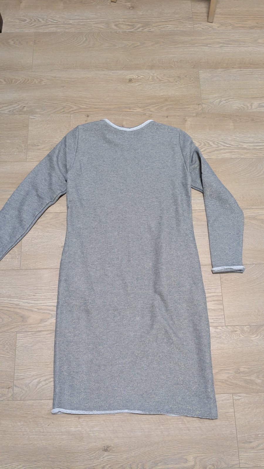 Predám v super stave, bez pośkodenia, šaty so zlatou nitou, teplejšie, s vreckami, farba sivo- béžová, zlatá niť.