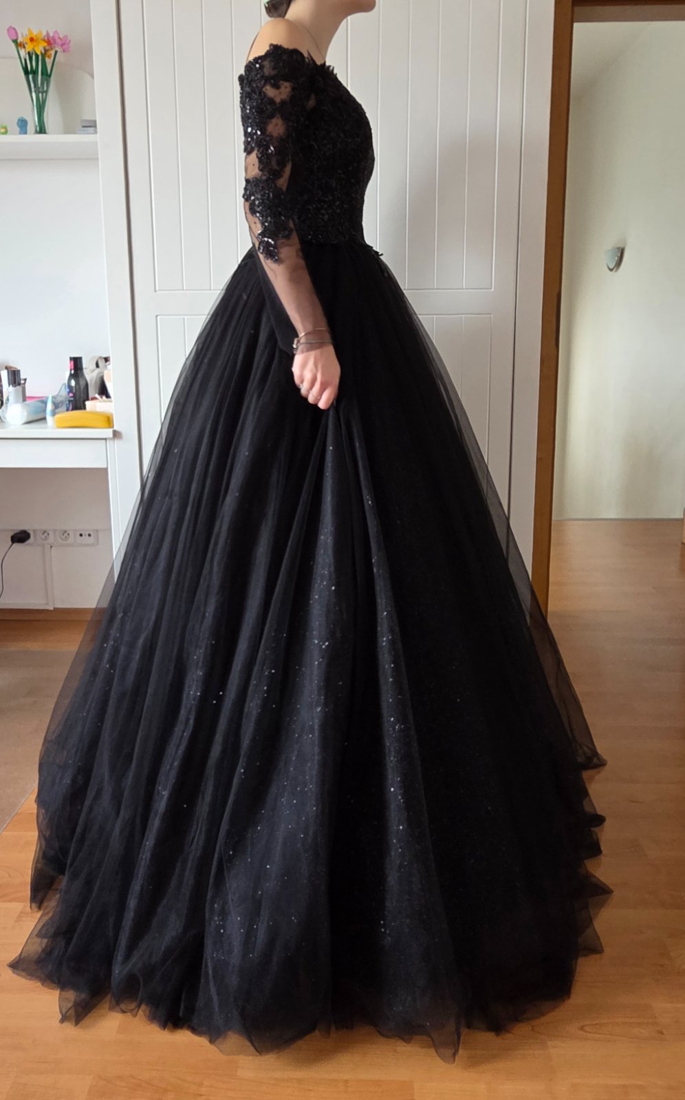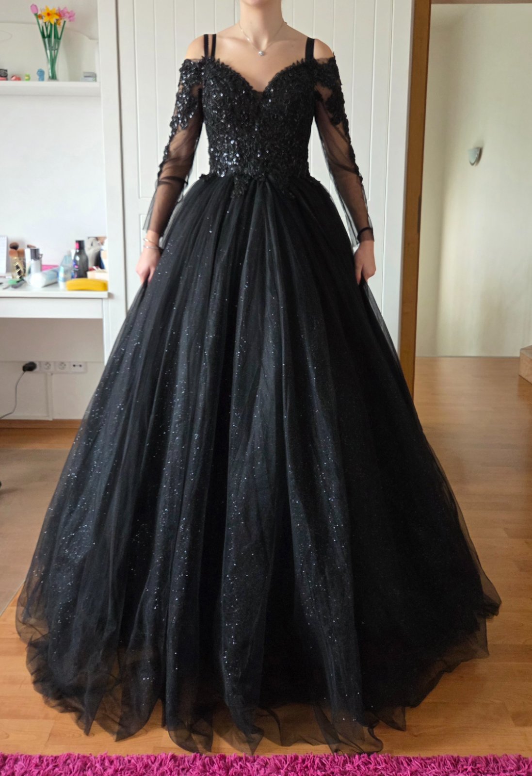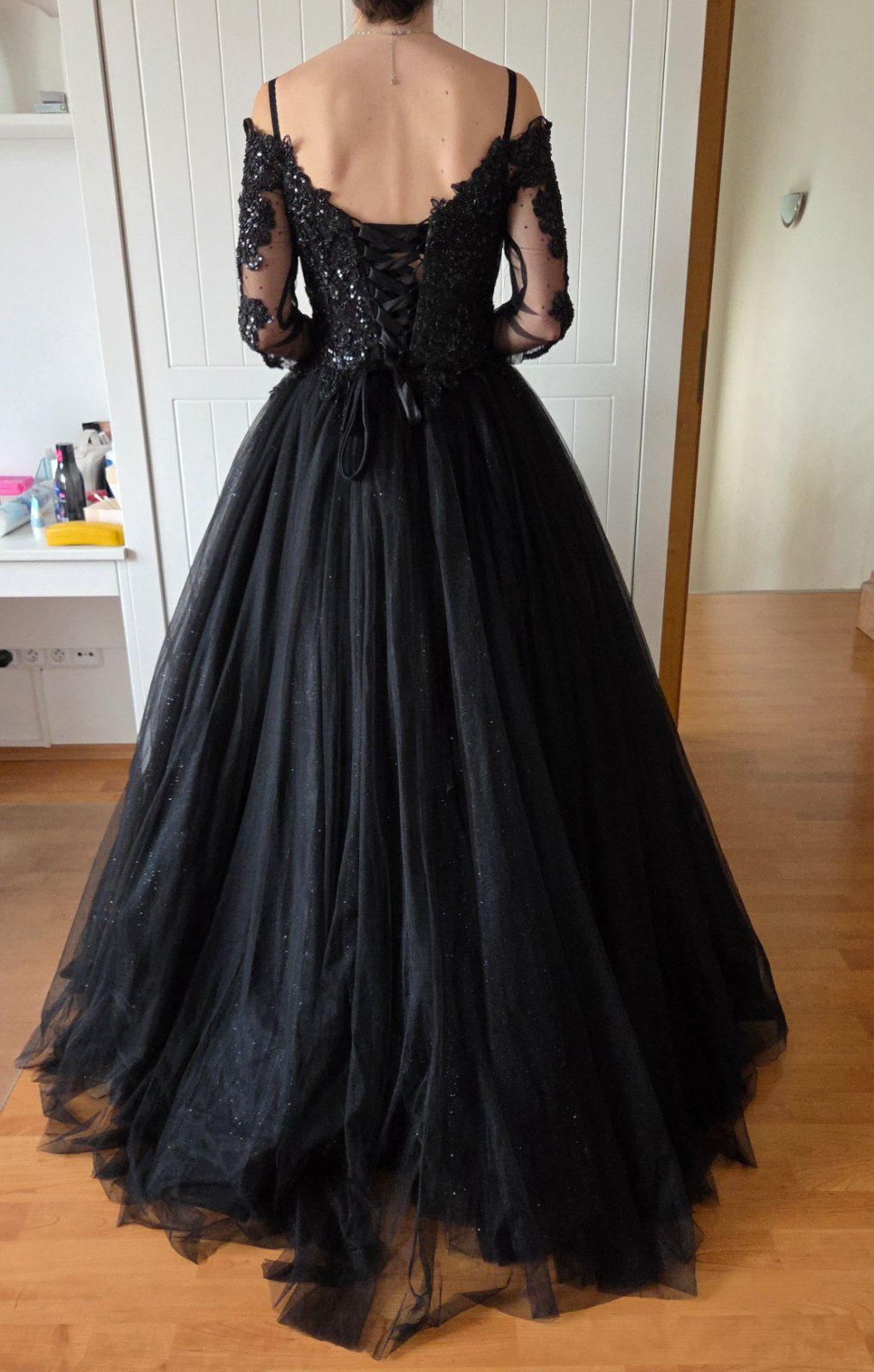 Čierno zlaté plesové šaty, oblečené na jednu príležitosť,neupravované (moja výška 168 +13cm podpätky)