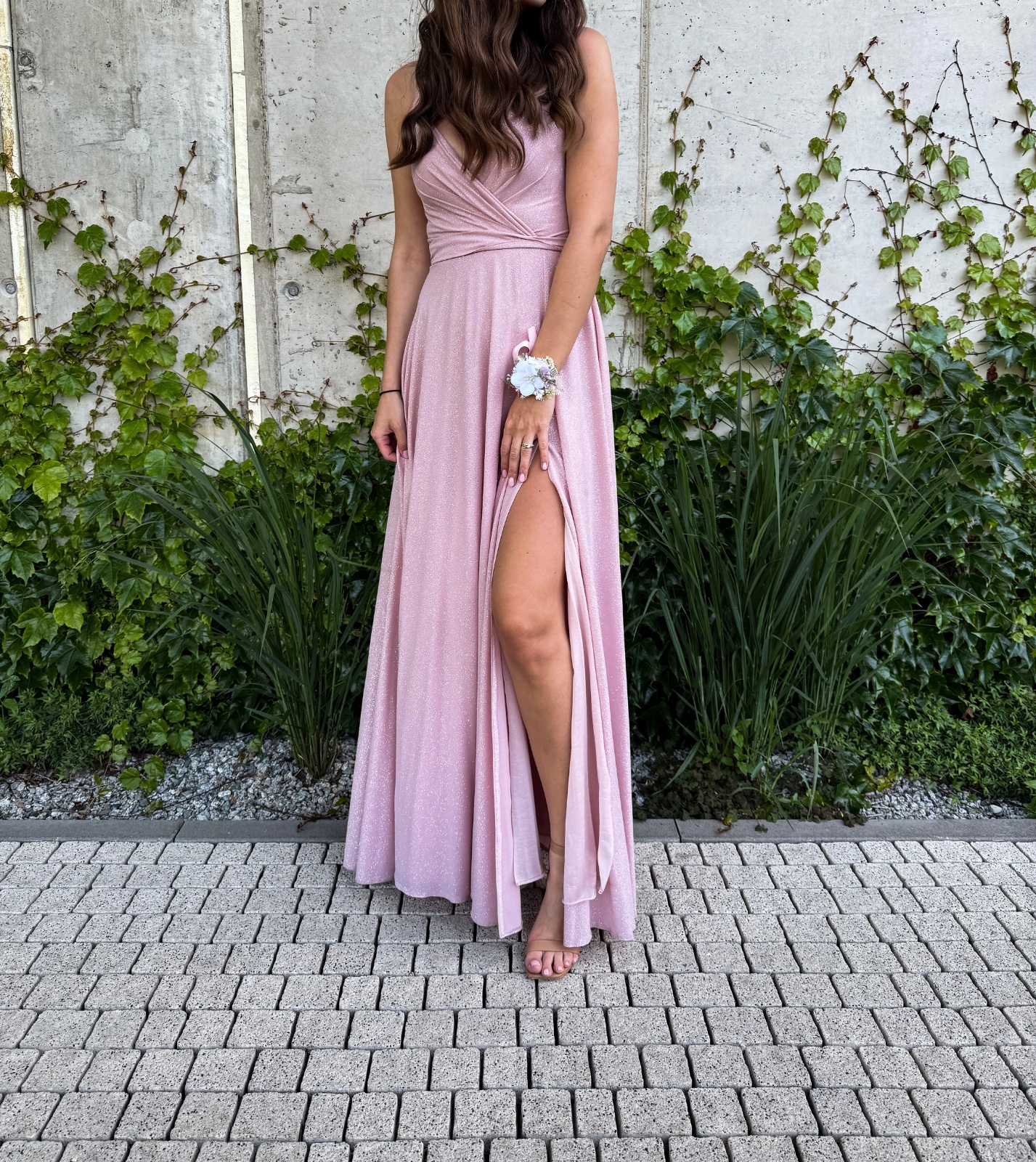 Dlhe trblietave ružové šaty