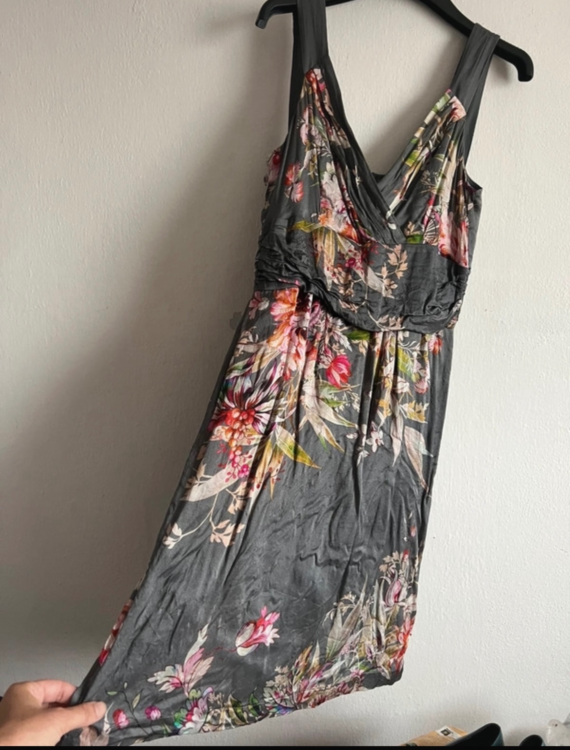 Hodvabne saty S Oliver Hodvabne saty S oliver pravy hodvab kvety Nieco nosene maju zips aj podsivku, stitky odstrihnute ale kupovala som ich ako hodvab a s velkost 100 perc silk