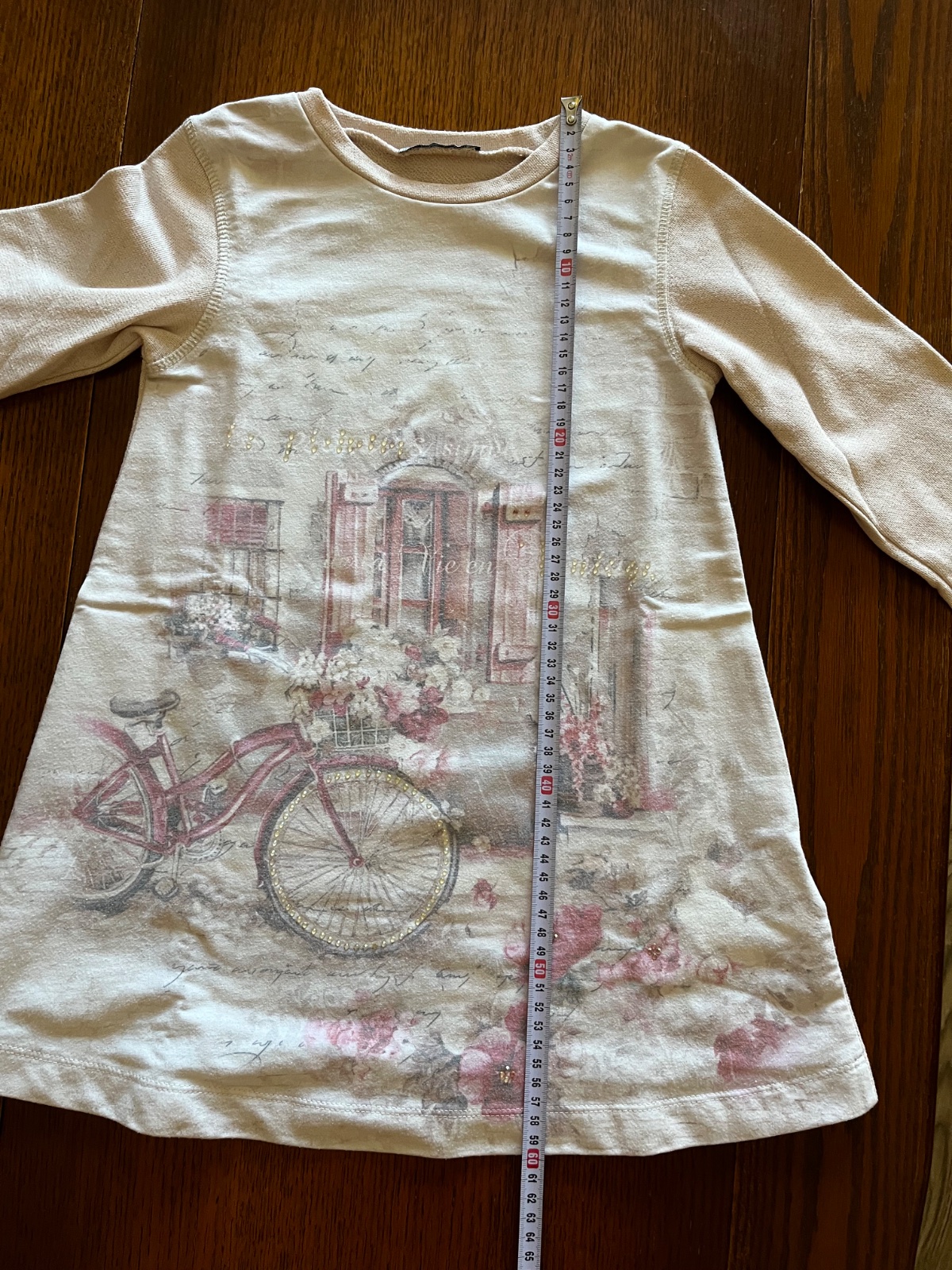 Šatičky majú vpredu veľký Vintage motív, typický pre značku Mayoral. Zvnútra sú šaty zateplené česanou úpravou, rukávy sú pretkávané striebornou niťou.