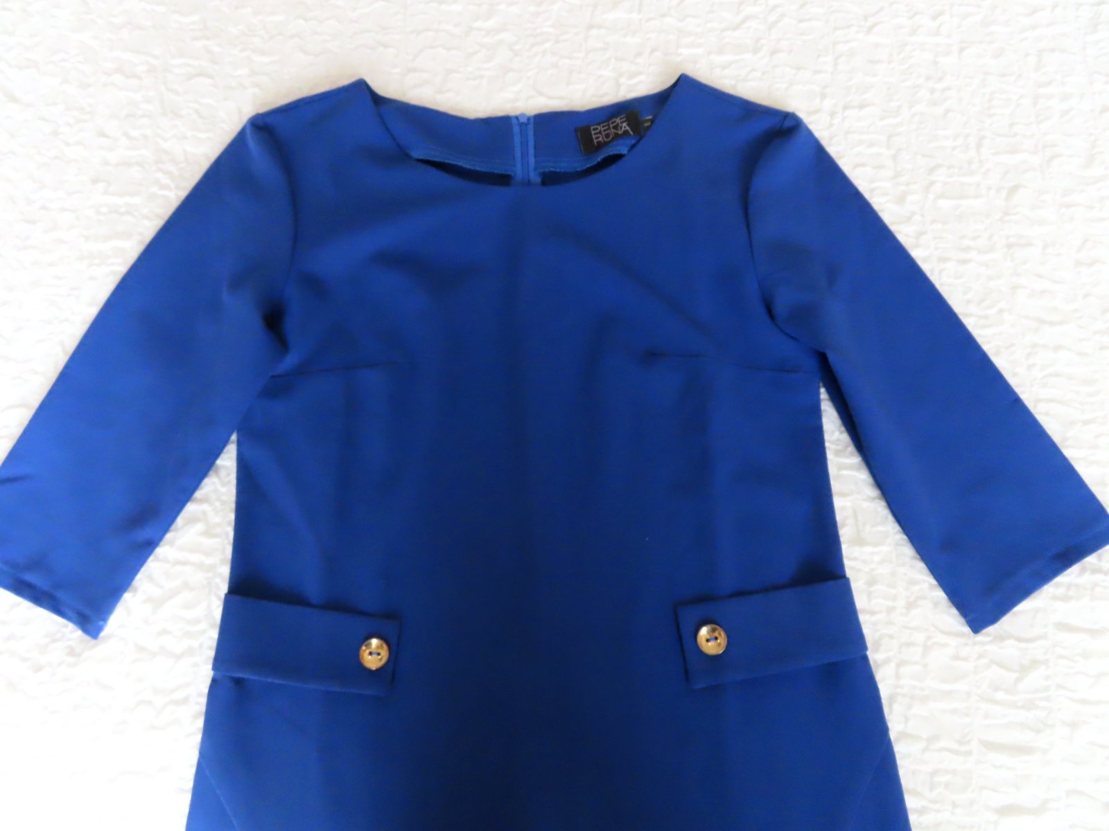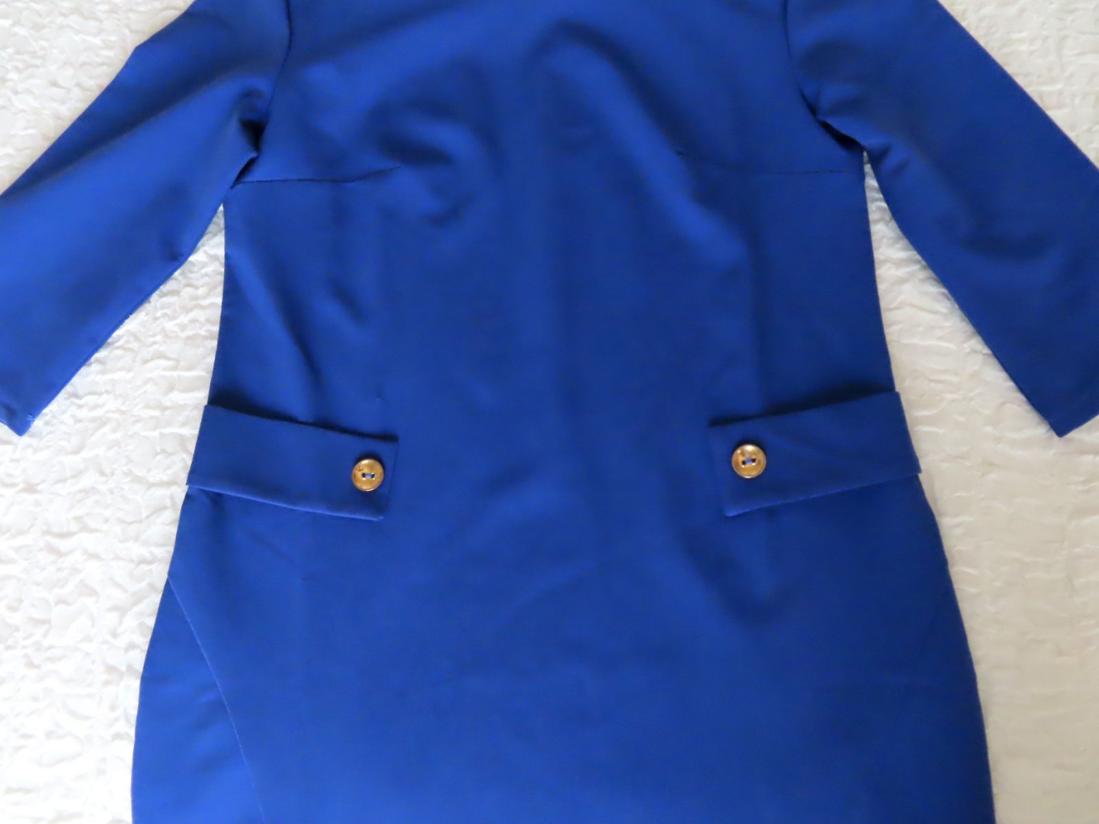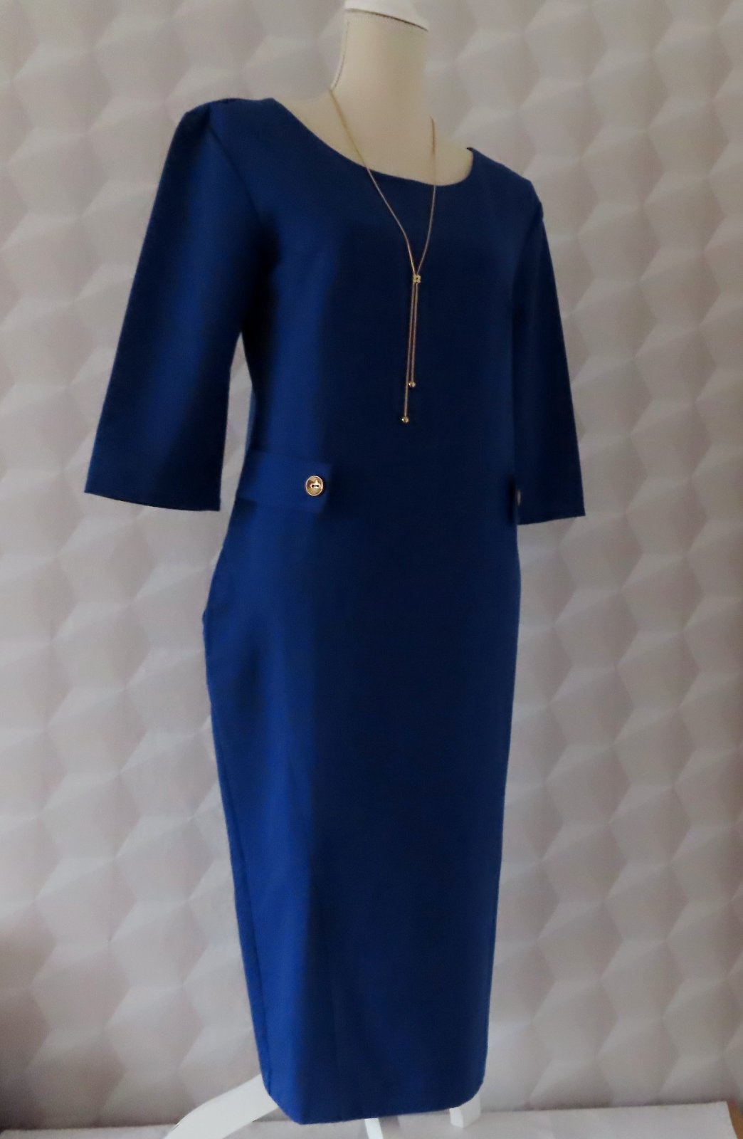 Dámske šaty Pepe Runa, farba kráľovská modrá, veľ.L - rozmery: dĺžka 108cm, pod pazuchami 2x45cm, pás 2x43cm, boky 48cm, rukáv je pod lakeť - 40/26cm.