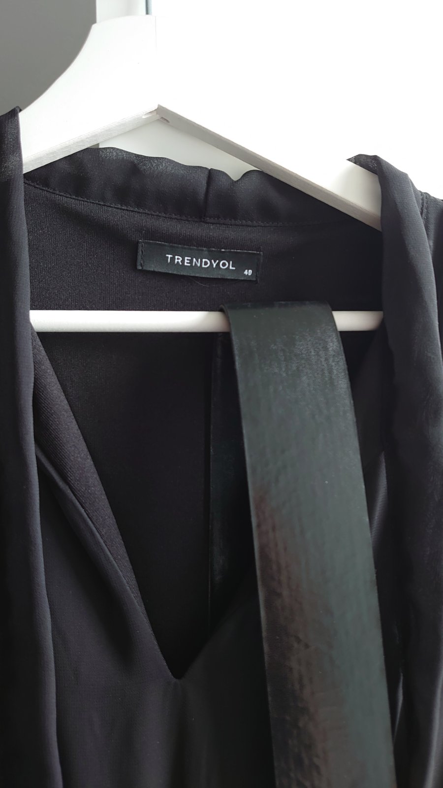 Predám čierne šaty, raz použité. Sú šifónové, jemne priehladné rukávy, sukňa je podšitá, nazbieraná, k šatom je aj opasok, u krku sa šnuruje mašlička, sú elegantné, dĺžka jemne nad kolená. Nepoškodené a značka trendyol-kúpené na about you. Poštovné je 4€ (pošta alebo packeta).