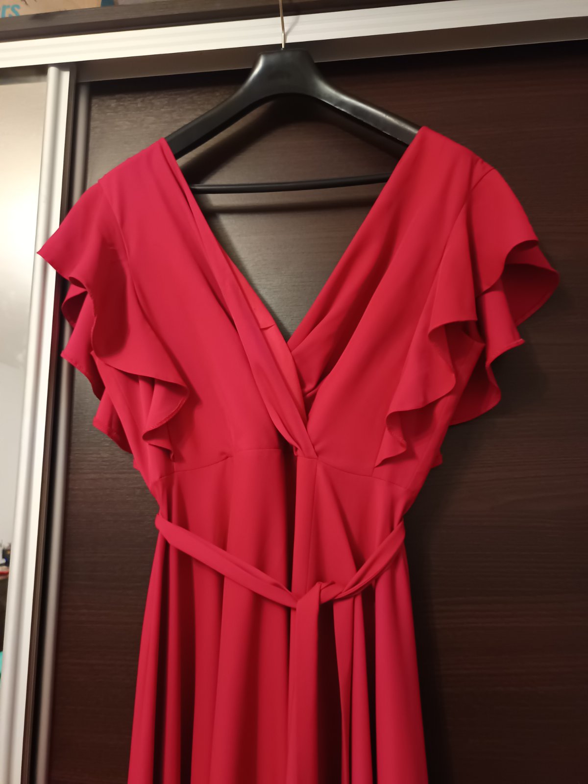 Luxusne šaty na slavnost,magenta farby,vzadu zips,na prsiach vystužene,s podšivkou,prekladany vystrih,pasovka zdobena flitrami a ligotovymi kaminkami.100%polyester. PC 90€ škr1 ROZMĚRY: vel.44/46,c...