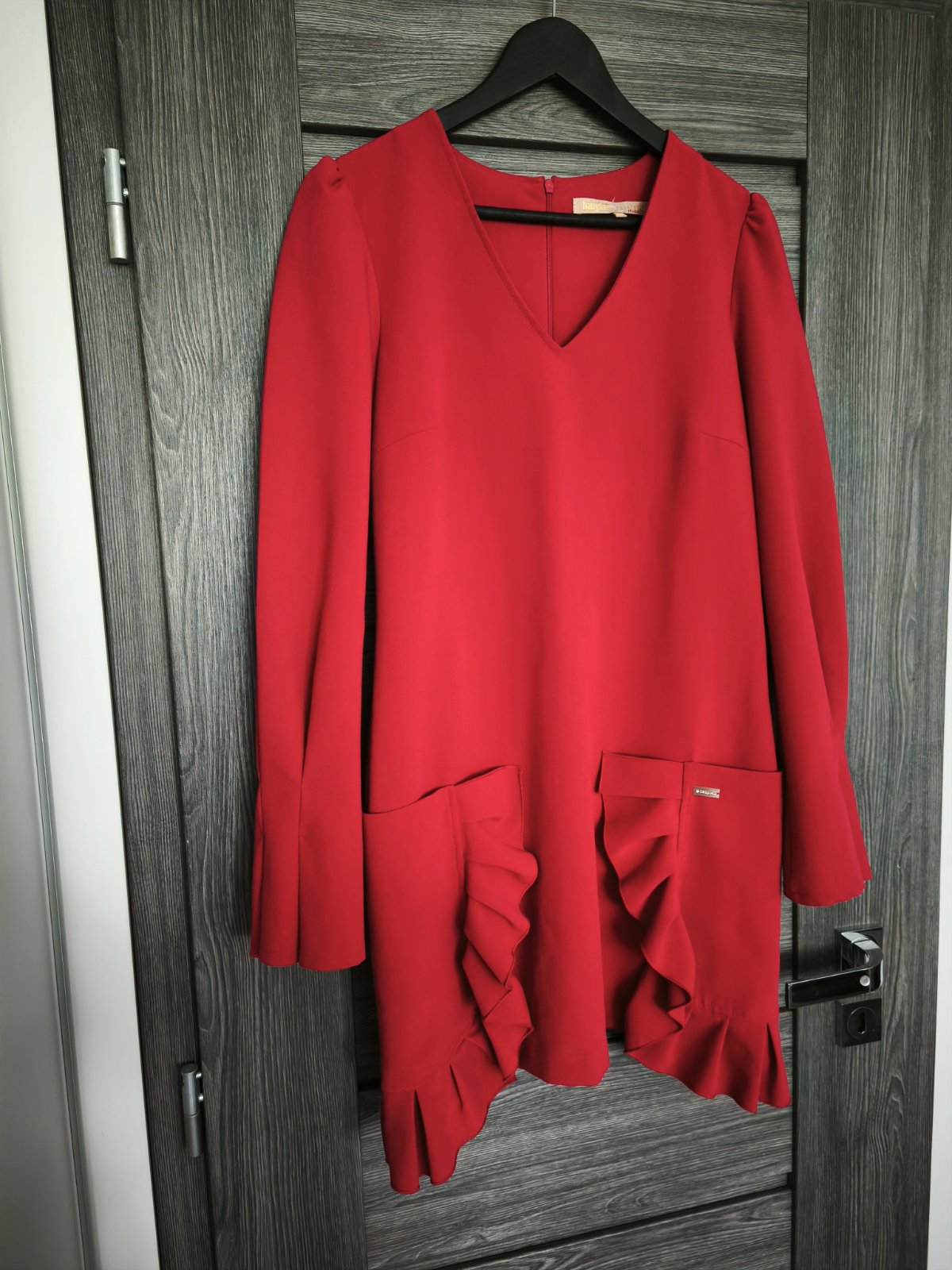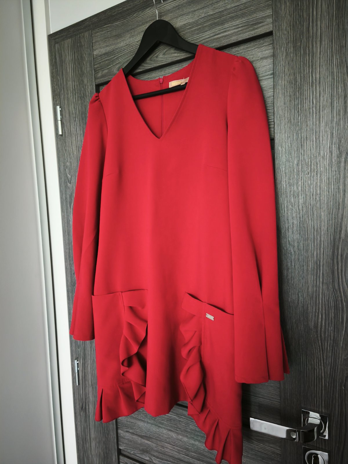 Krasne saty luxusnej znacky Babylon talianske cislovanie 42 sedia krasne na S/M velkost rovny pohodlny strih. Su krasne obzvlastnene prednymi vreckani s volanikmi a takisto aj na rukavoch pekny detail. Oblecene uplne minimalne v top stave. Hrubsia latka vhodne skor na prechodne obdobie nie su tenke lahke. Povodna cena bol vysoka.