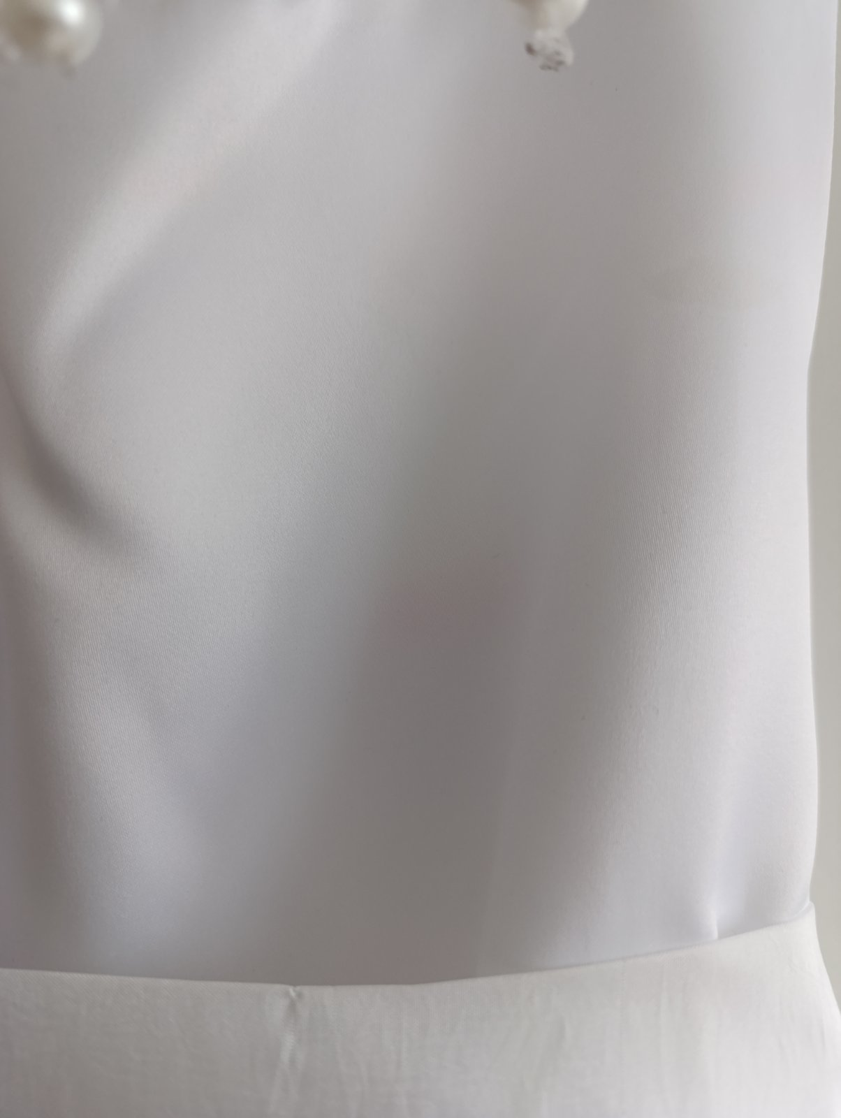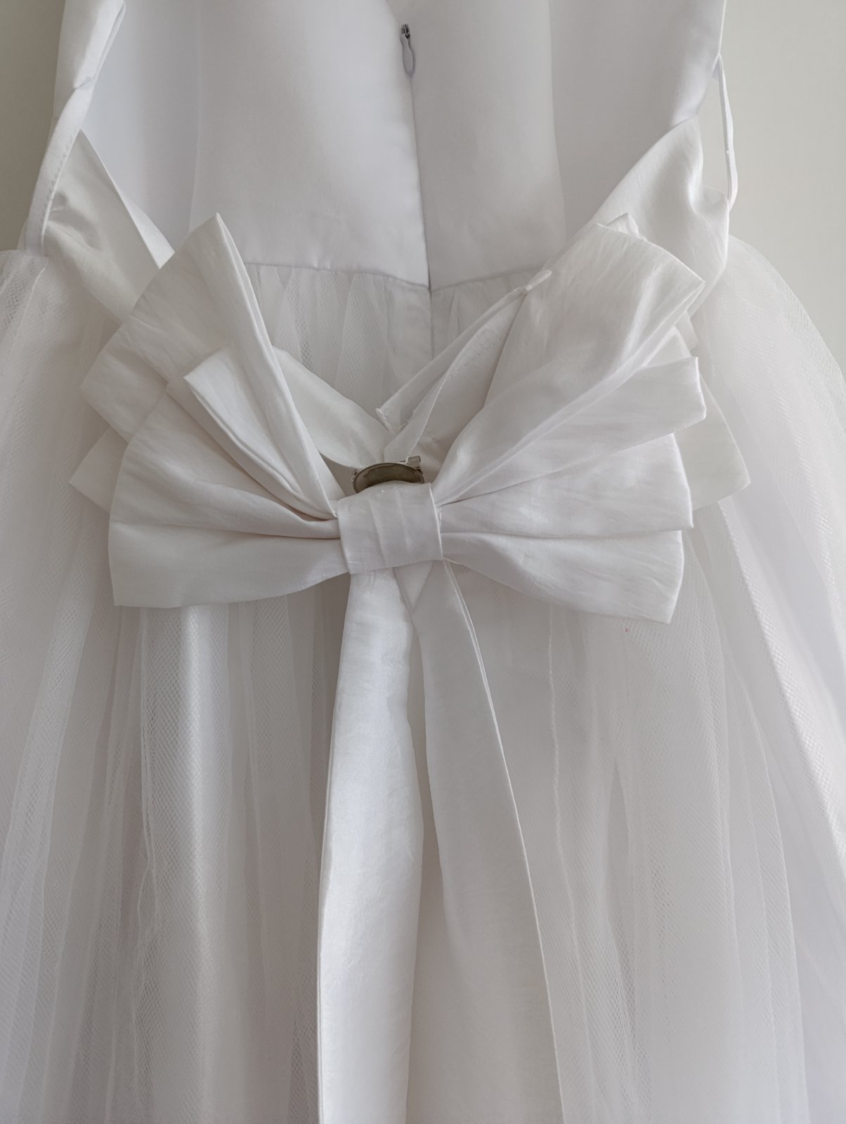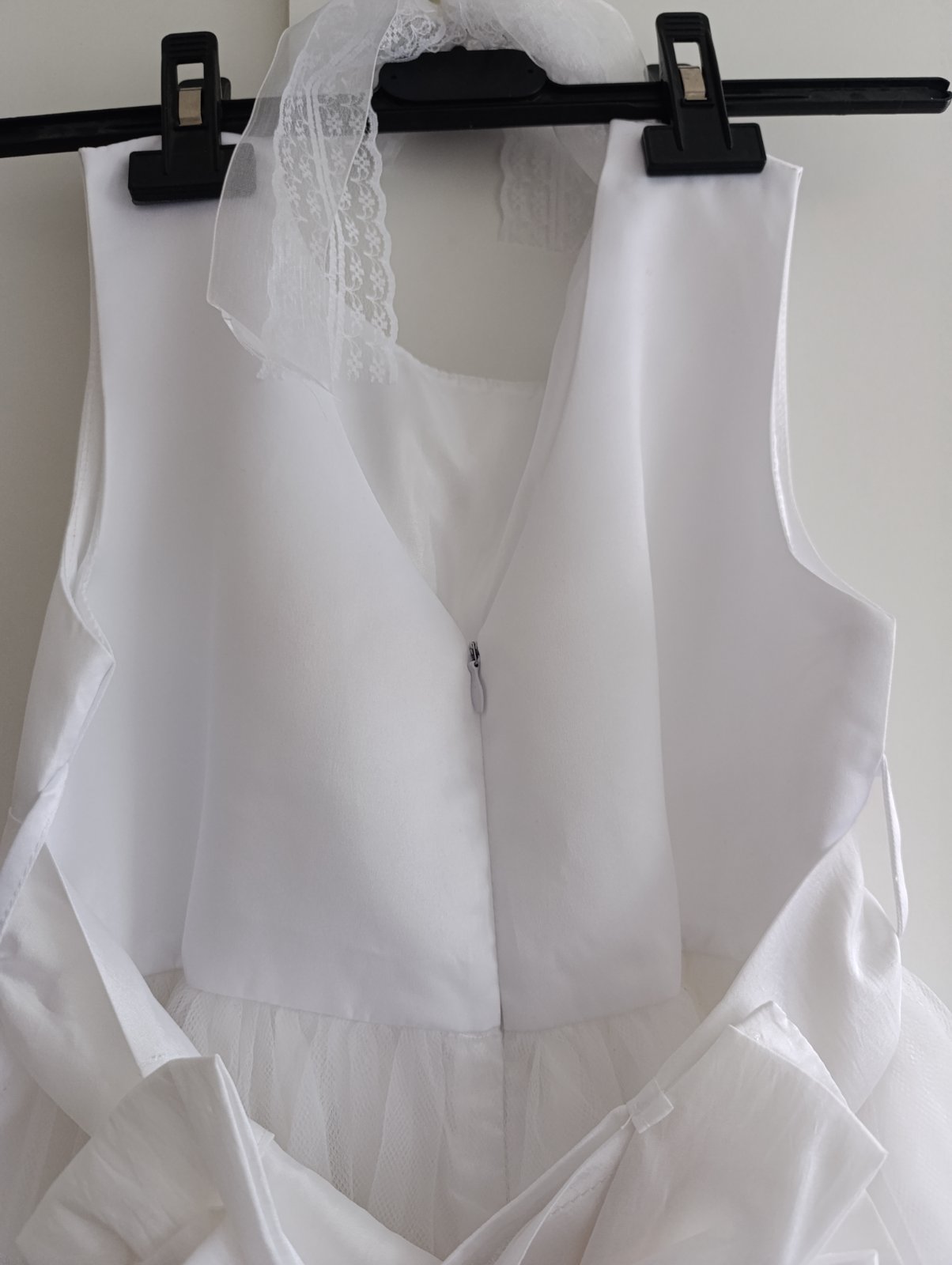 Predám šaty na 1.svate prijímanie v dobrom stave. Jeden volanik zo zadu je opravovaný. Bolo nám naň stúpené a povolil. Pri bežnom nosení to nevidno iba z blízka. Viď foto.