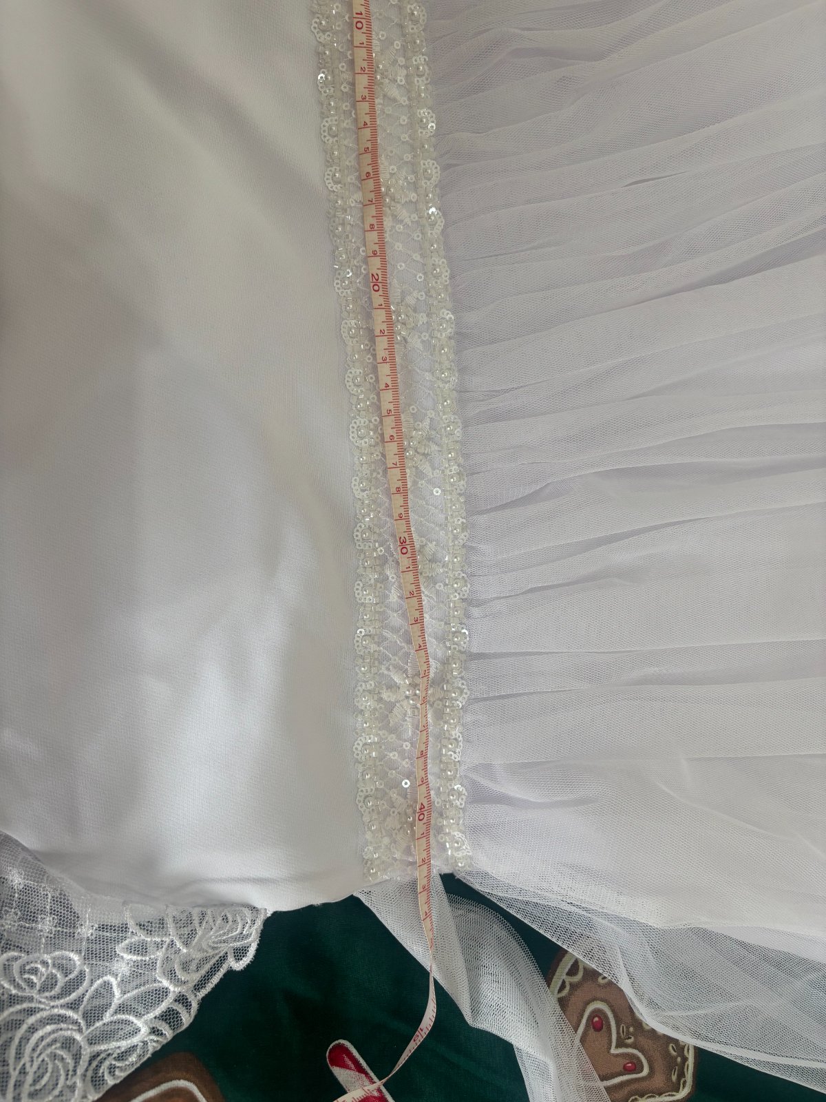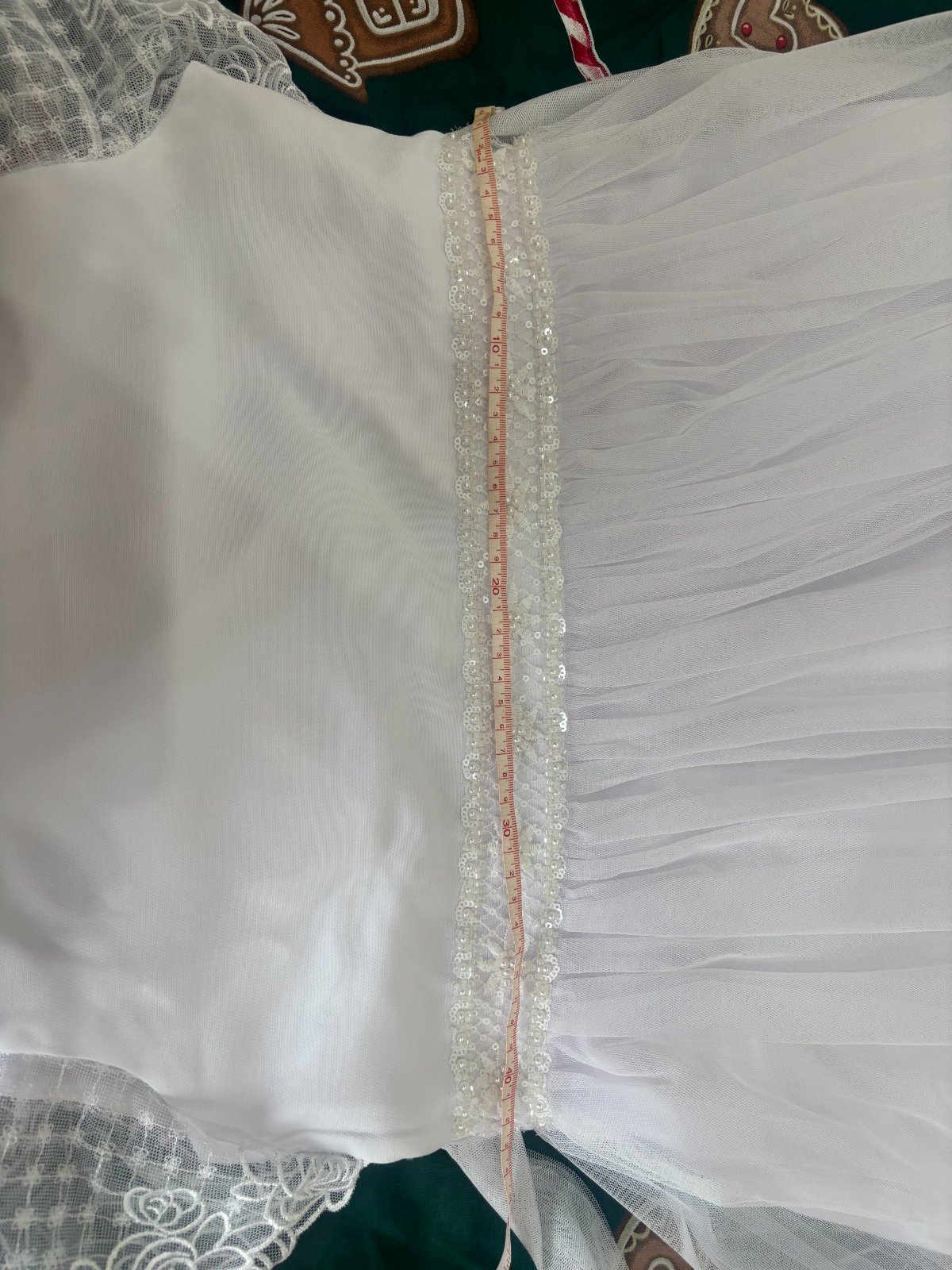 Jemne, elegantne saty oblecene 2 hodiny pocas 1. svateho prijimania. Bez akychkolvek poskodeni. Kupovane v polskom butiku za 95 € - ziadna cina. V bazari mam aj topanky k nim, velkost 35 + kabelka gratis.