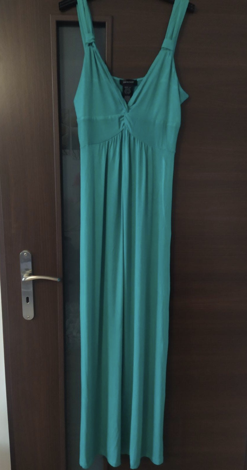 nové, bez visačky, lahučký materiál dlžka 145cm, obvod prsia cca 96cm, pás cca 36-38cm mierne sa poddajú, na oboch stranách rázporky S/M