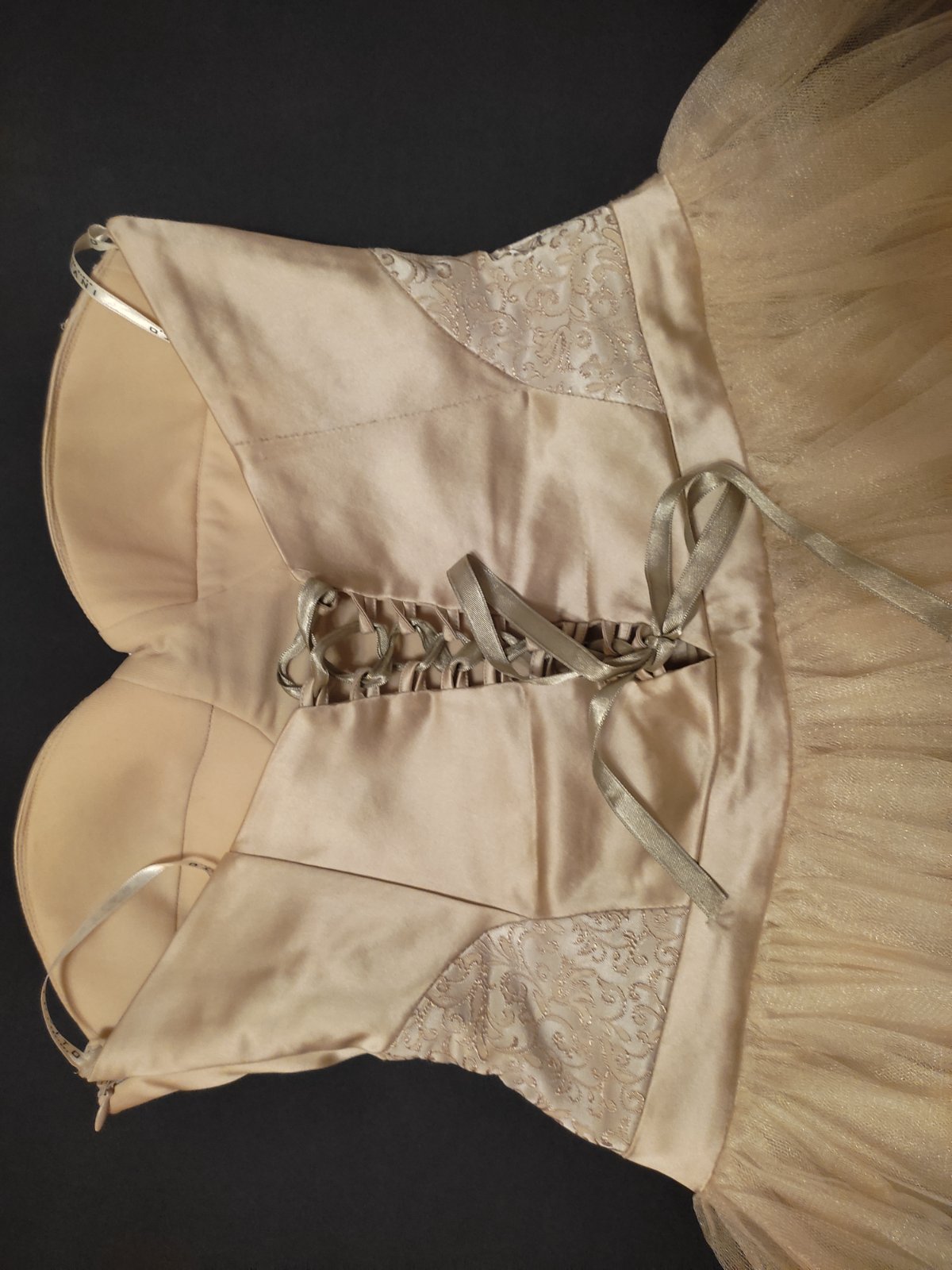 Veľmi pekne šaty oblečené iba na promóciach. Šírka sa da prispôsobiť sťahovaním šnúrky.