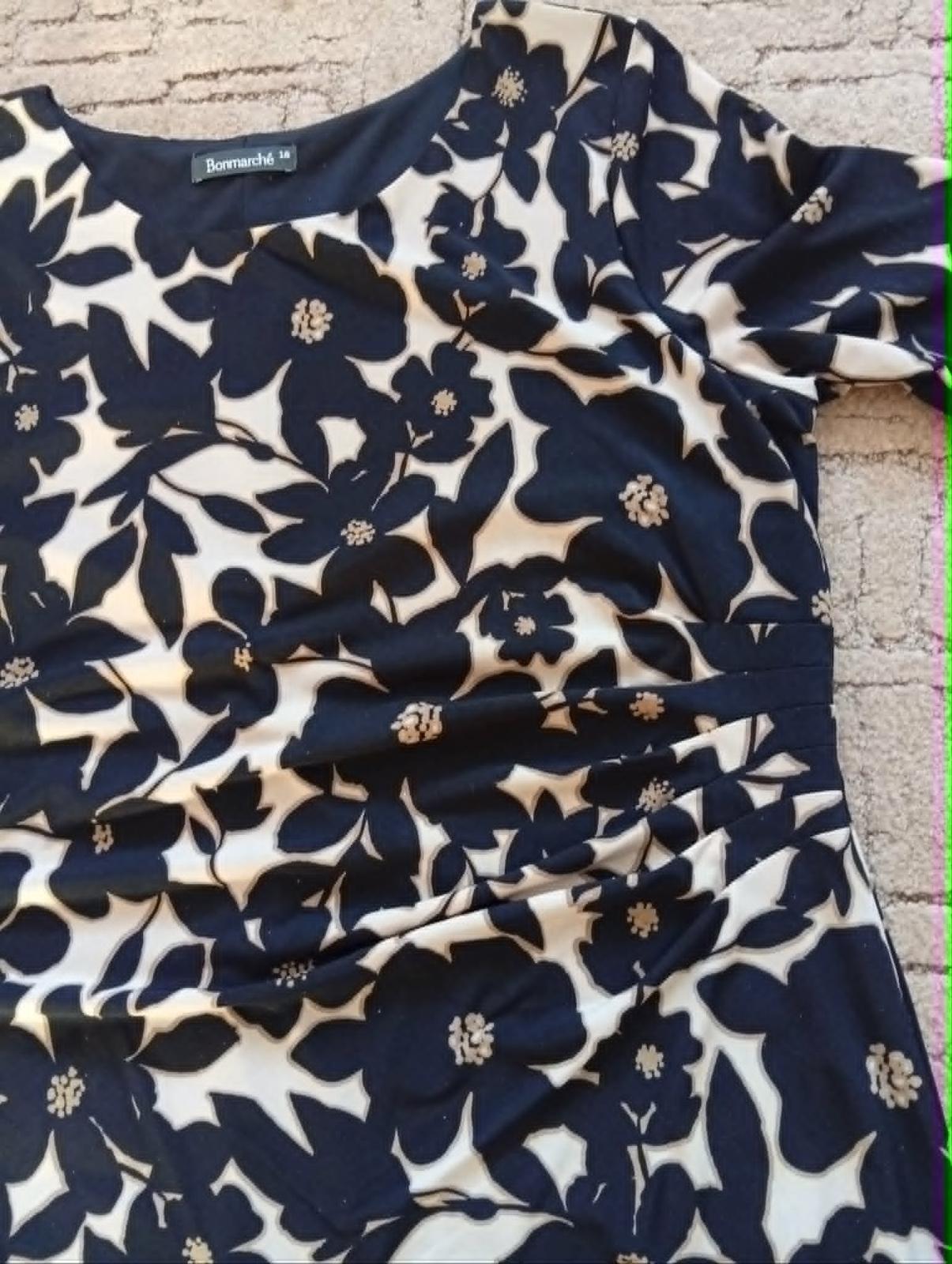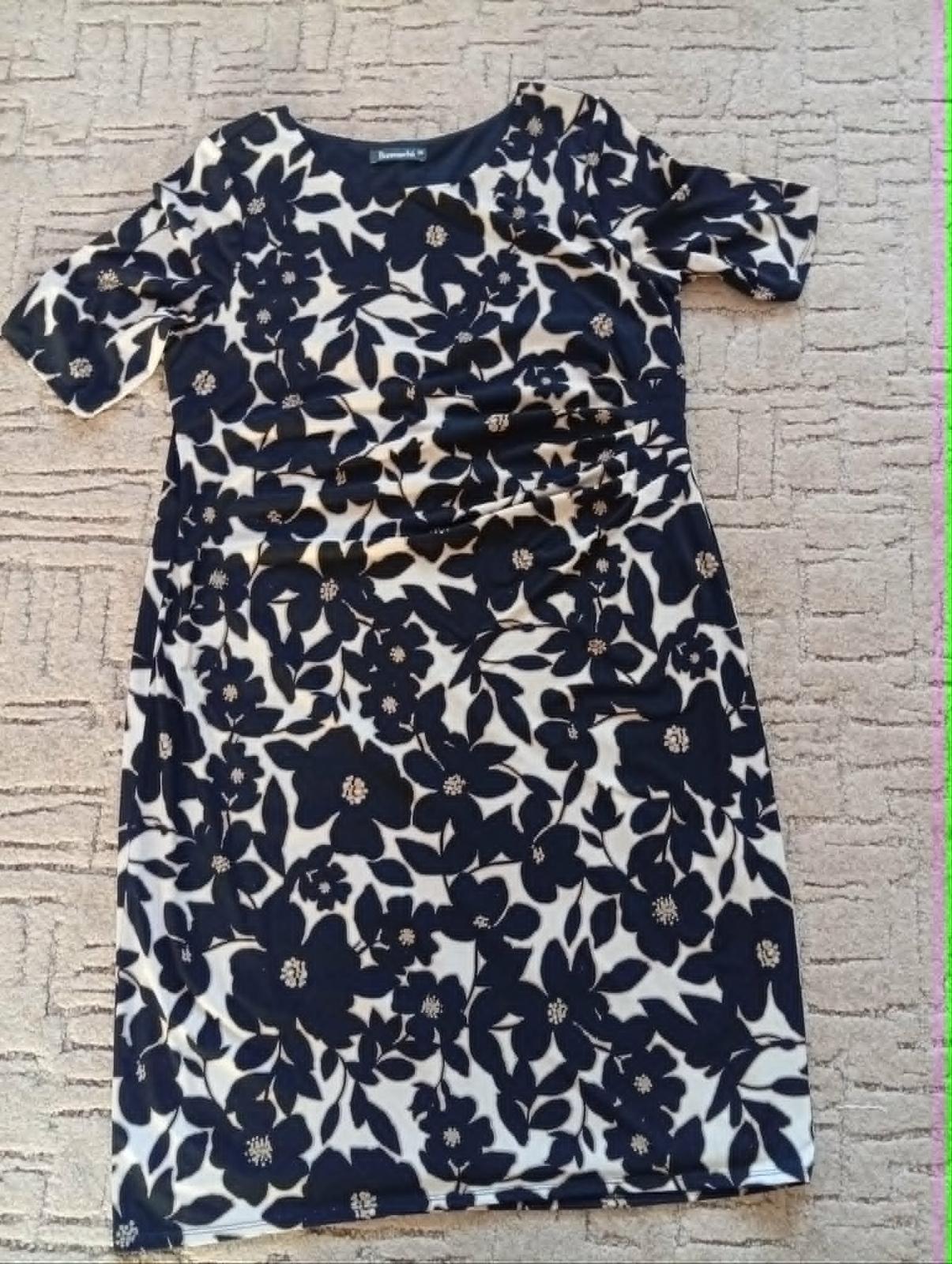 Elegantné, kvalitné, nekrčivé, pohodlné, podšité, mierne elastické šaty zn. Bonmarche. Strih so záhybmi na prednom diele, kryje brucho. Ako nové.