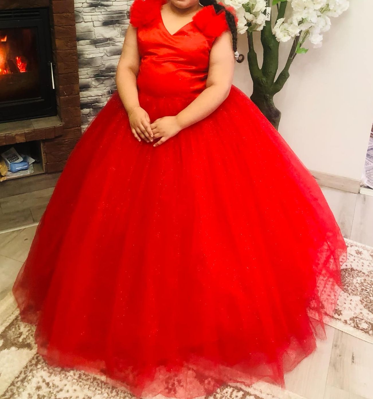 Krásne červené luxusné trblietavé šaty bohatým tukom štvor-vrstvovy oblečene...2h