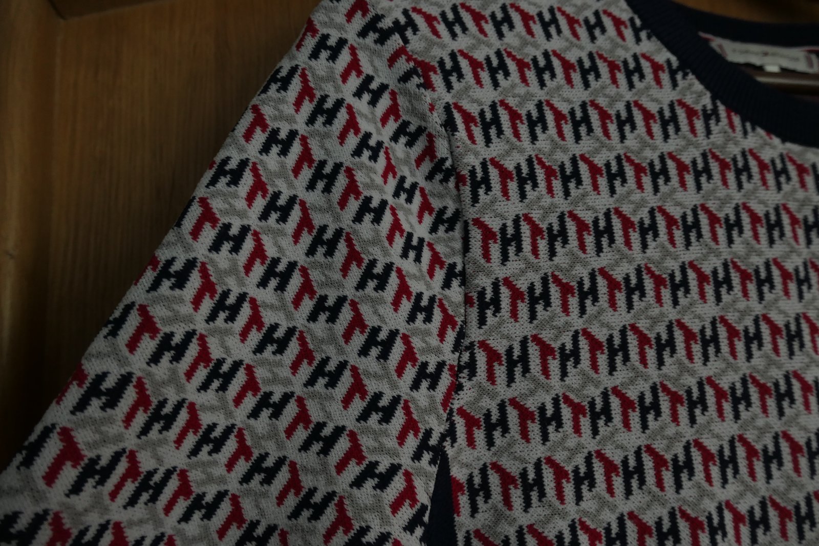 ponukam luxusne kvalitne, zostihlujuce krasne saty, opticky zostihluju postavu, po celej ploche monogram TH, na rukave kovove logo TH, pruzne, pohodlne, super sa nosia, bez chyby, velkost Lko, vyuzitelne celorocne