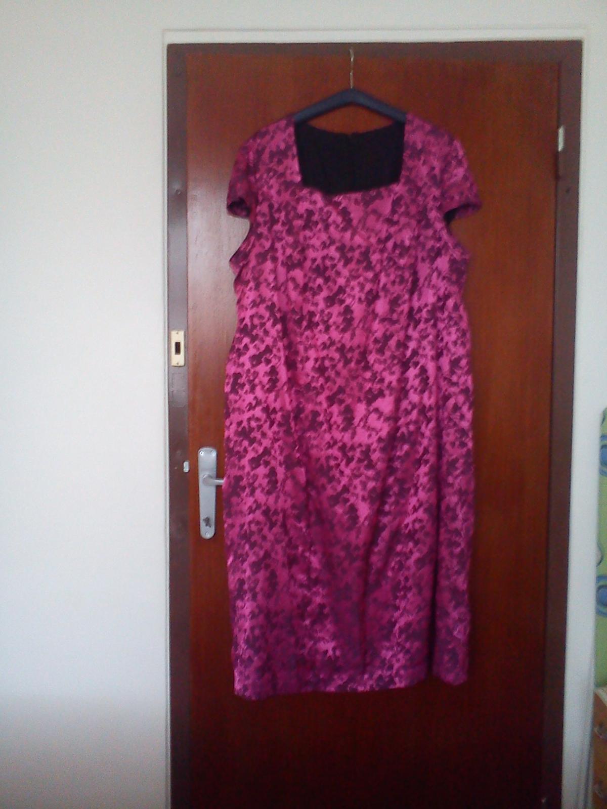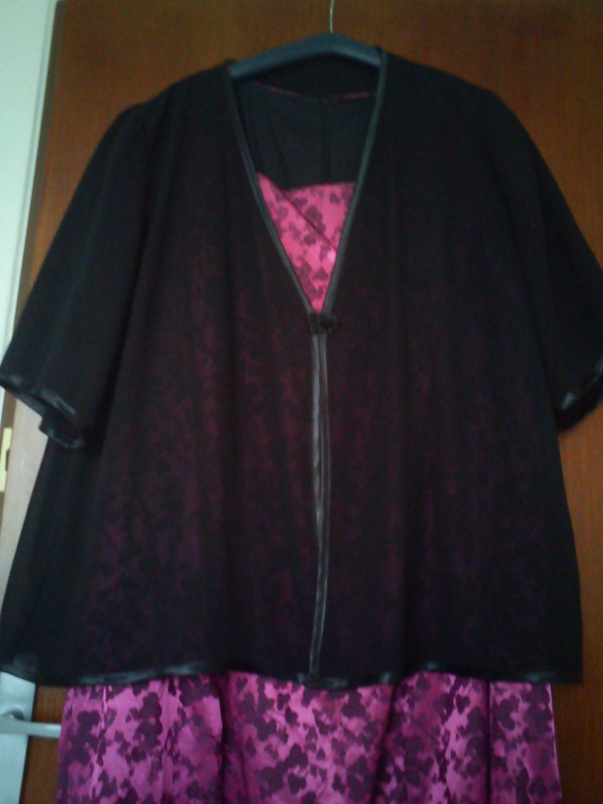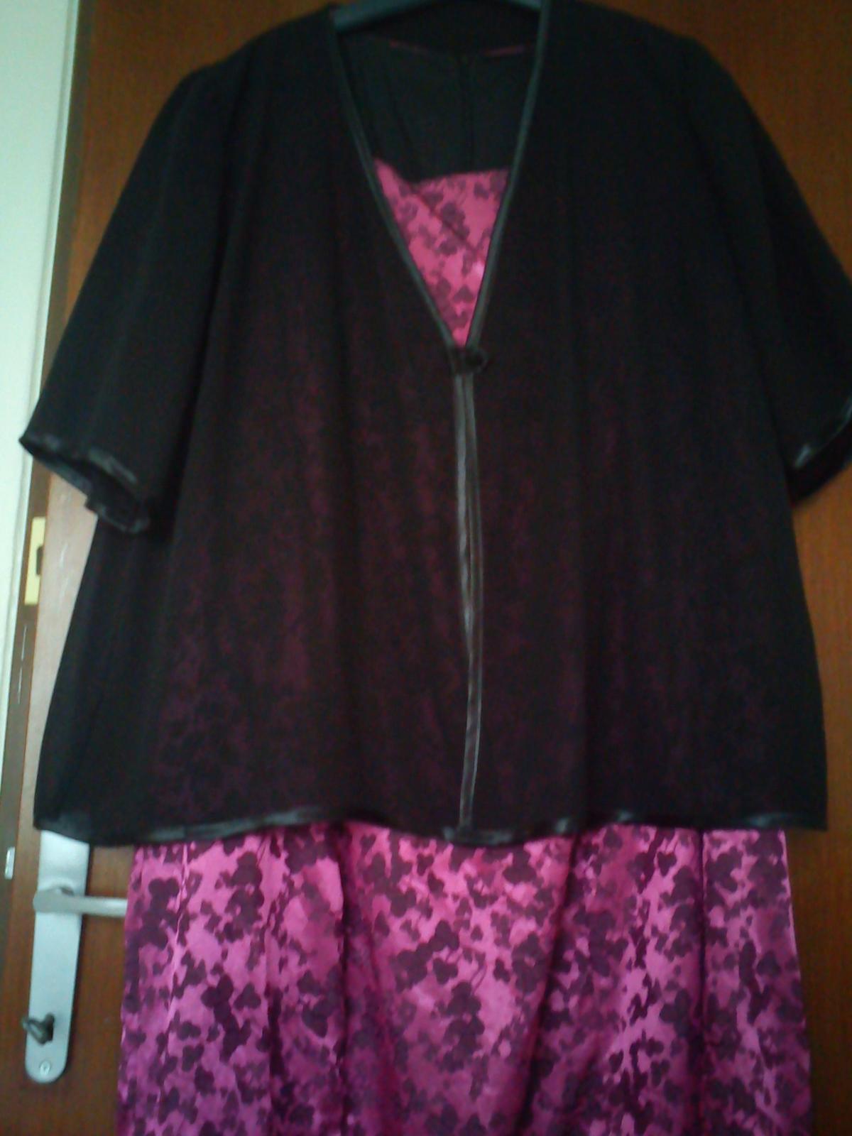 Nové, elegantné šaty- 1 x oblečené na svadbe. Sú ciklamenové, šité v módnom saléne, veľmi kvalitná látka, sú podšité čiernou. Krátky rukávček. K tomu ponúkam aj žoržétové čierne bolérko, olemované saténovým prúžkom. Miery-šaty cez prsia 65x2 cm, boky 68x2,, dl-125 cm,