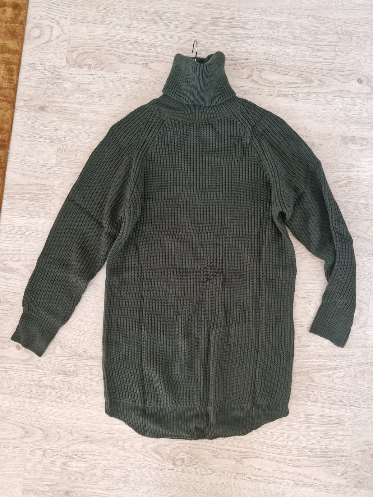 Krásna tmavo zelená farba, na foto trochu v strede skreslena. V top stave, mäkké príjemné na dotyk. Celková dĺžka 100, šírka pod pazuchami 48