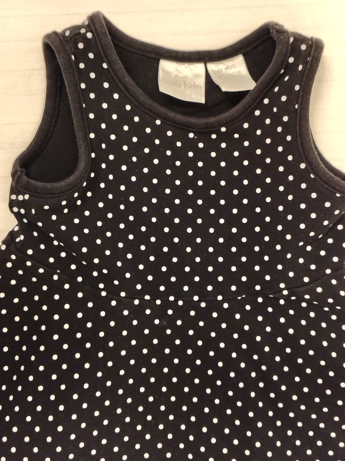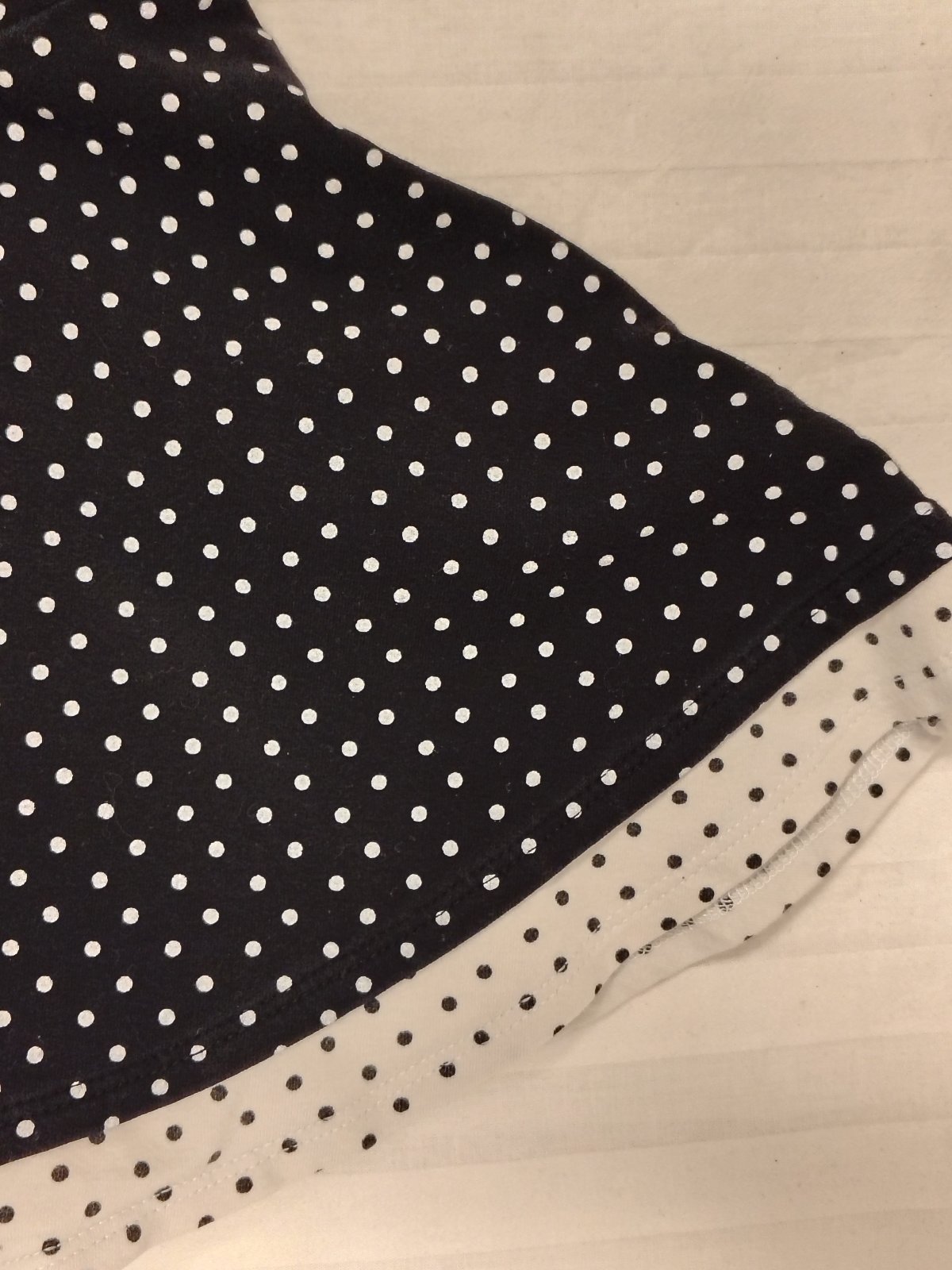 Dievčenské bodkované šaty, šaty majú nadčasový čierny podklad s bielymi bodkami a spodný kontrastný biely volán, vďaka čomu pôsobia veľmi dievčensky a elegantne.