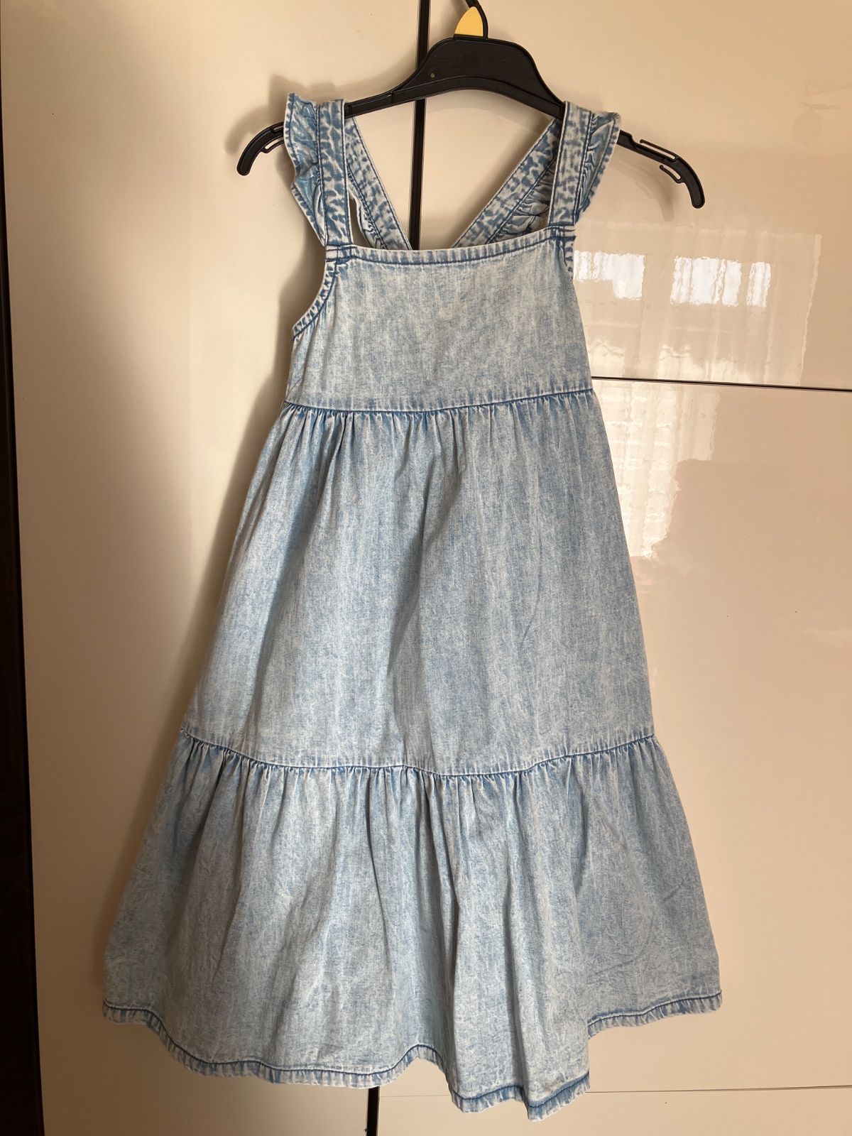 Úžasné šaty v top stave. Prekrížené volánikové ramienka cez chrbát a na chrbte elastické. Naozaj krásny kúsok. Dĺžka cca do polovice lýtok.