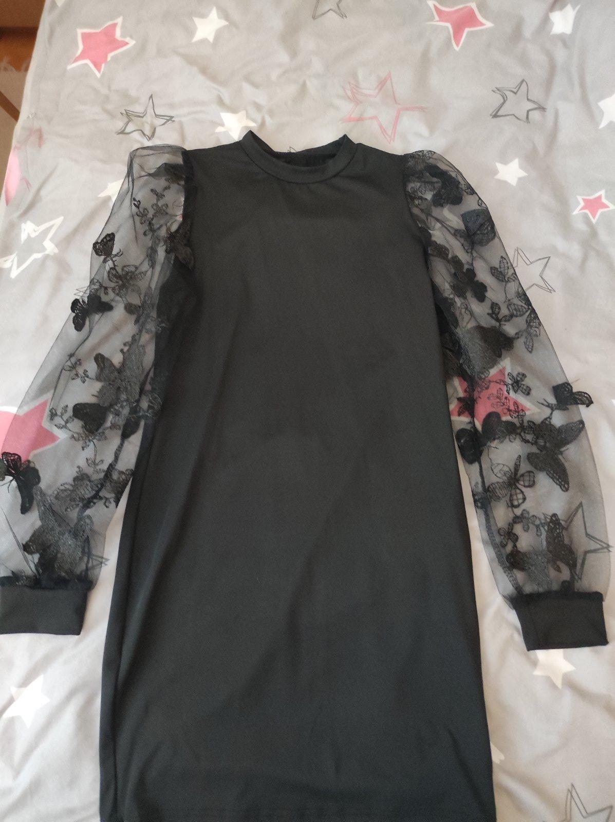 Predám krásne spoločenské šaty..strih je rovný ,malý stojacim u krku,rukávy sú krajkové na konci patent ...na rukávoch na krajke vyšité motýle...veľmi pekne ukážu na postave...úplne bez závad,použité len 1x na príležitosť ...vhodné na vek 11/12/13r