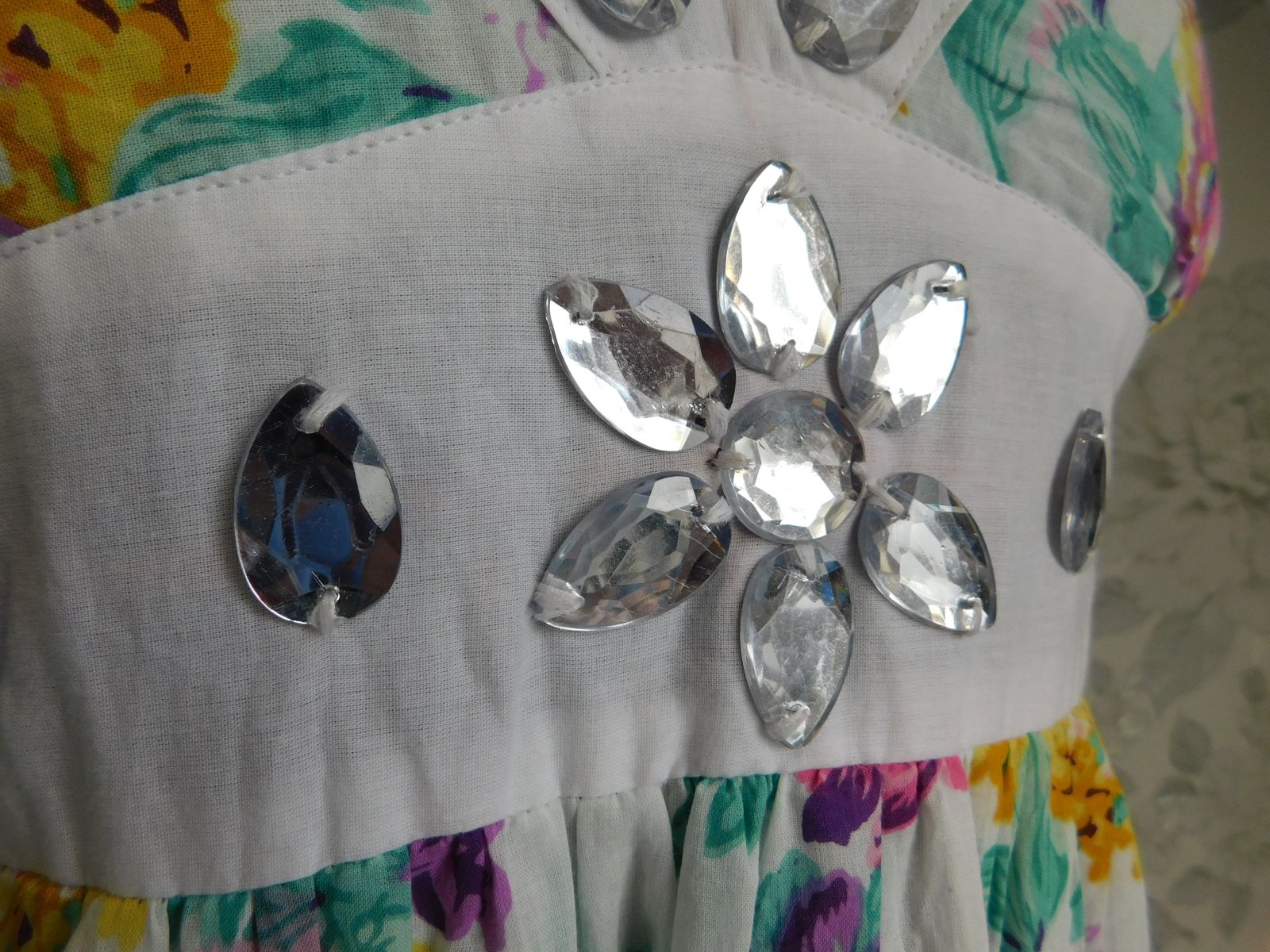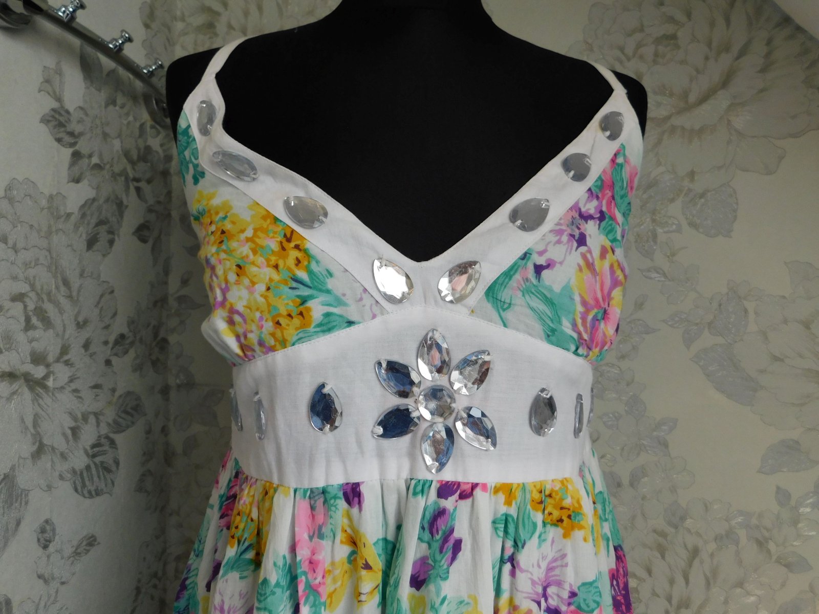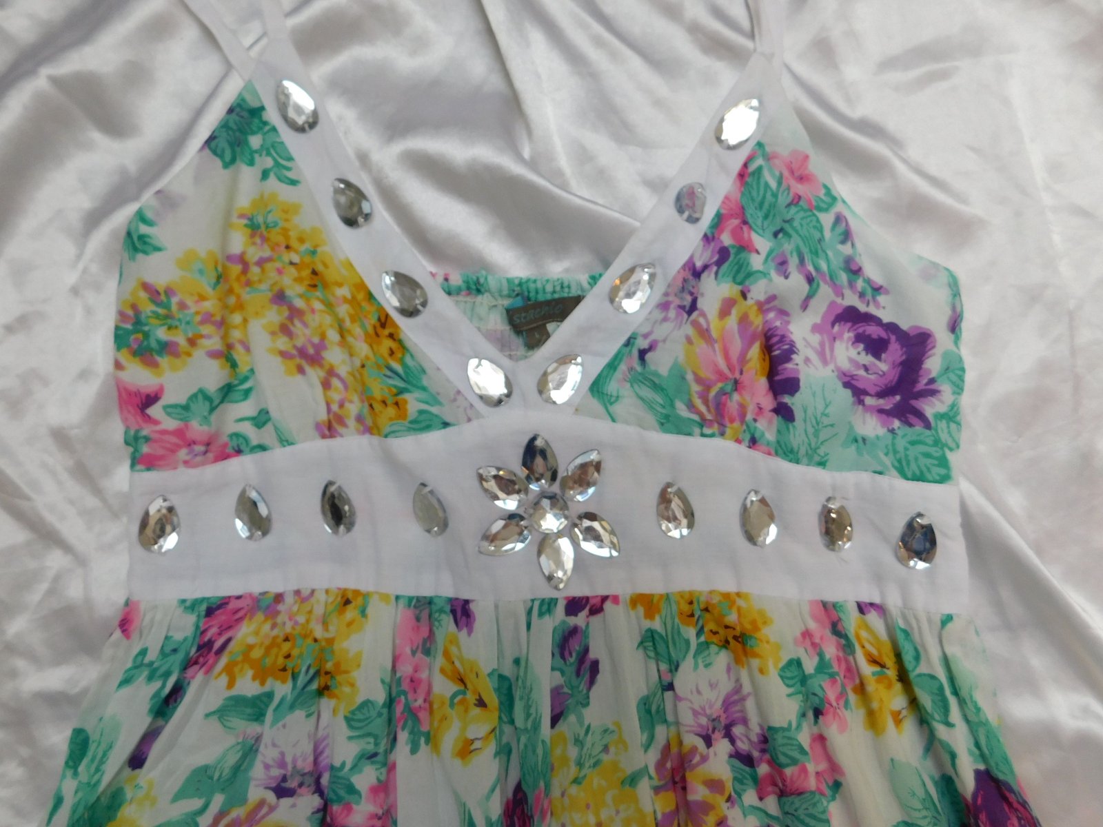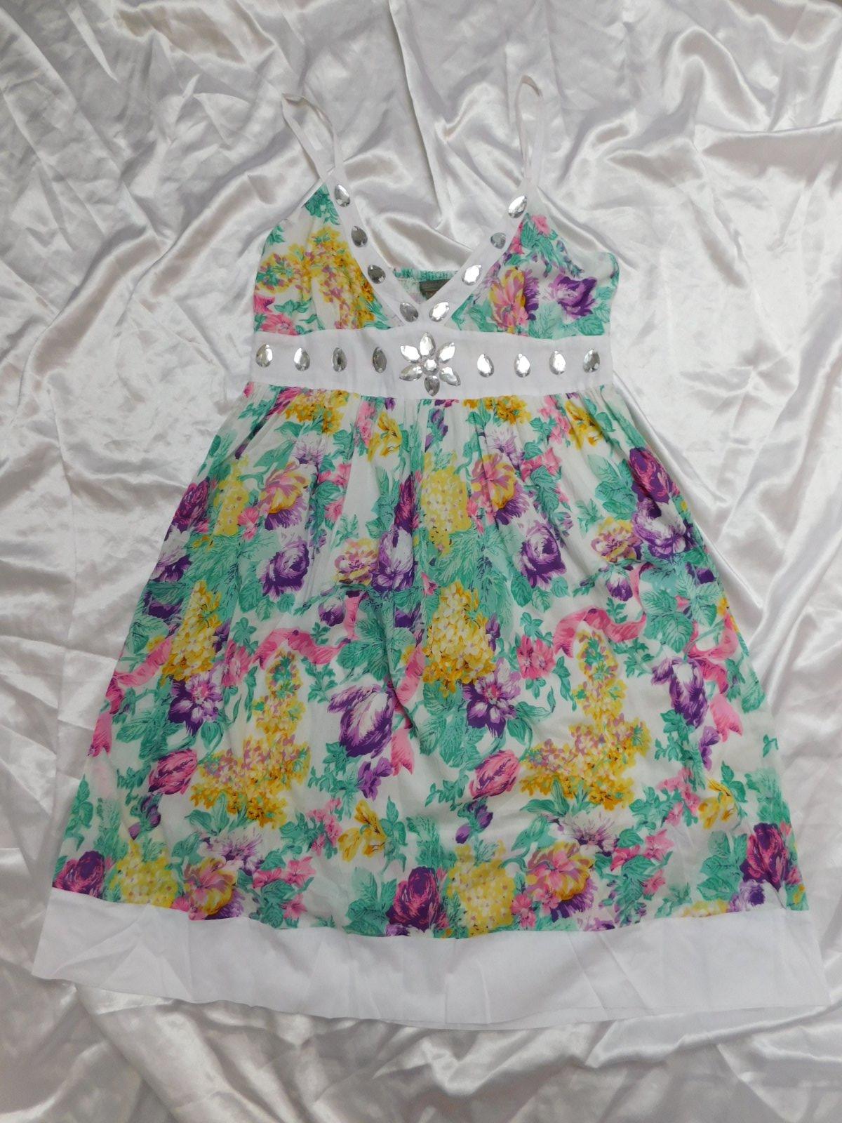 Velmi pekne letne šaty,s potlačou,s podšivkou,vzadu žabičkovane.100%cotton.le38