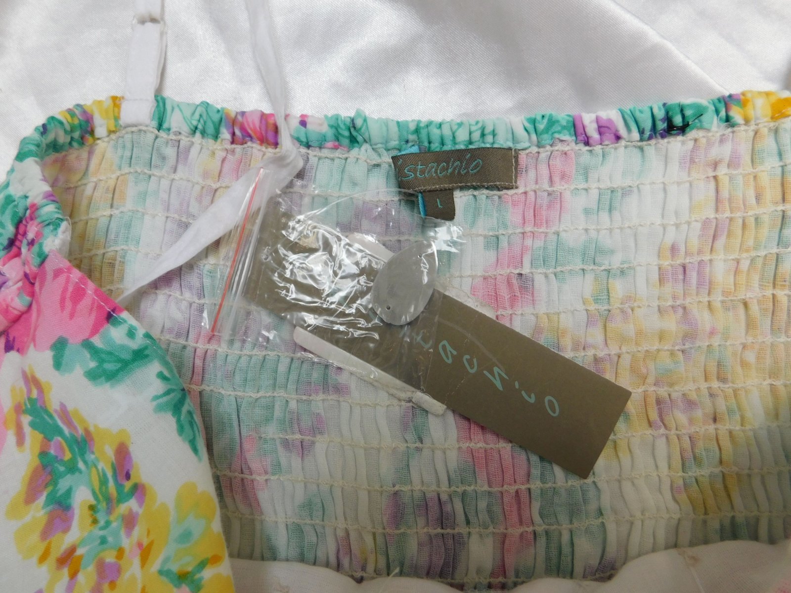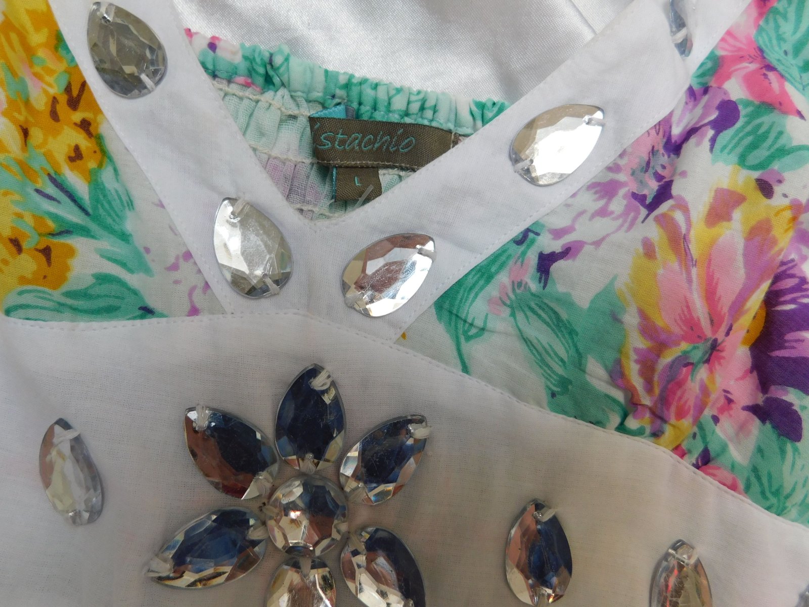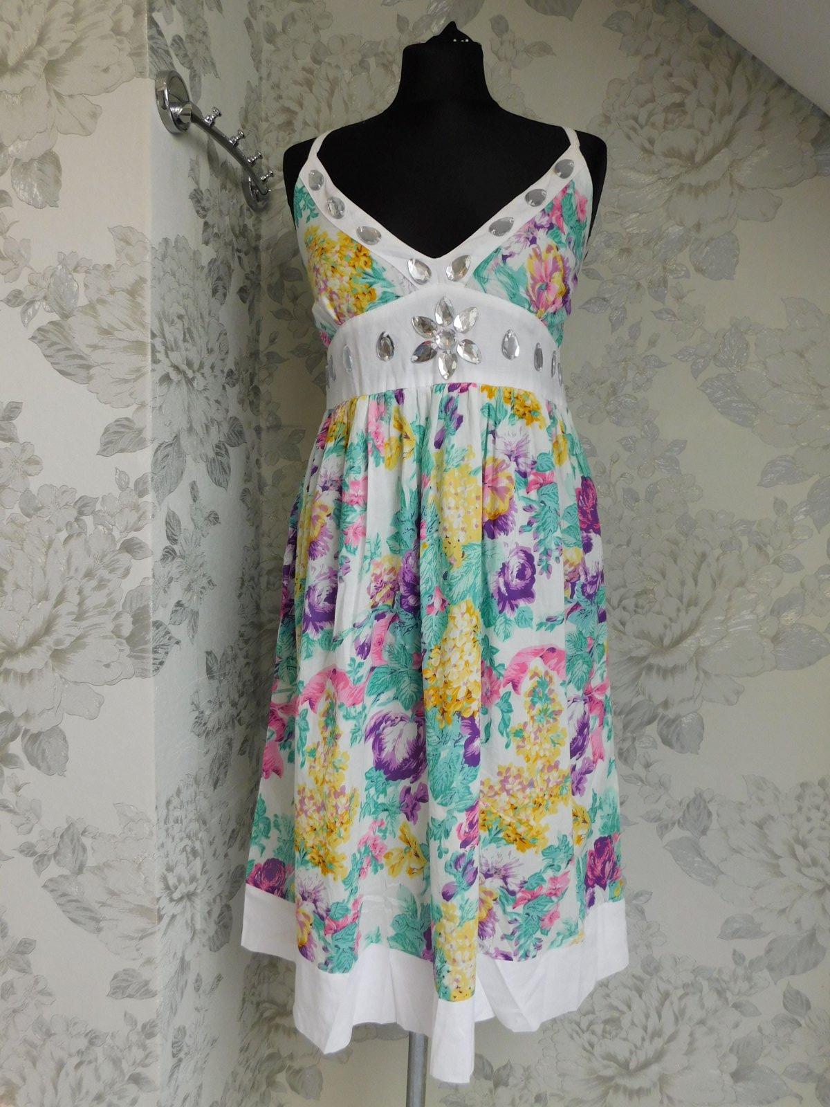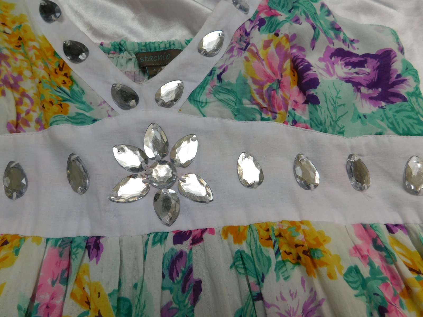 Velmi pekne letne šaty,s potlačou,s podšivkou,vzadu žabičkovane.100%cotton.le38